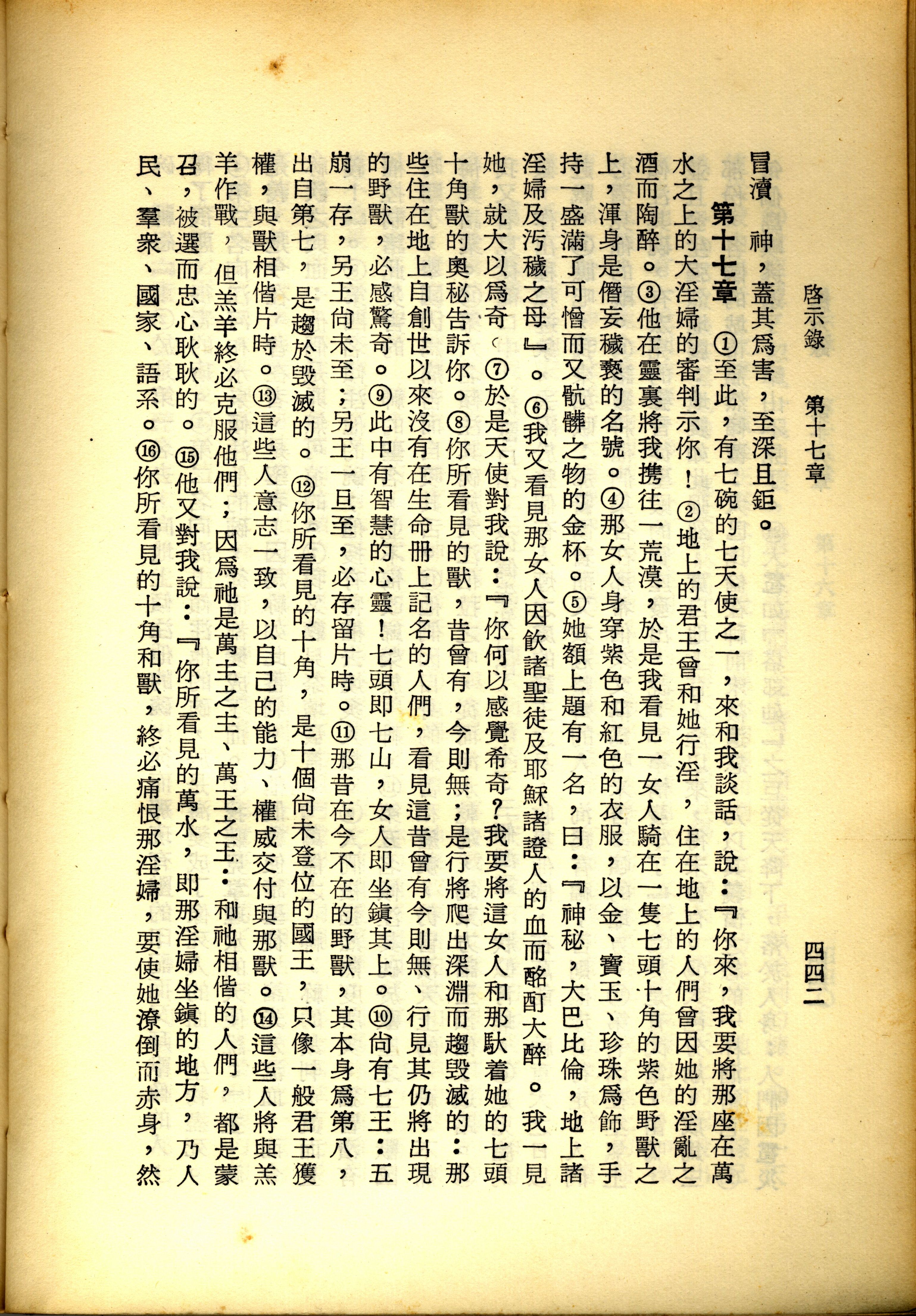 1967年新译新约全集 启示录 17 章 1 节到 17 章 16 节