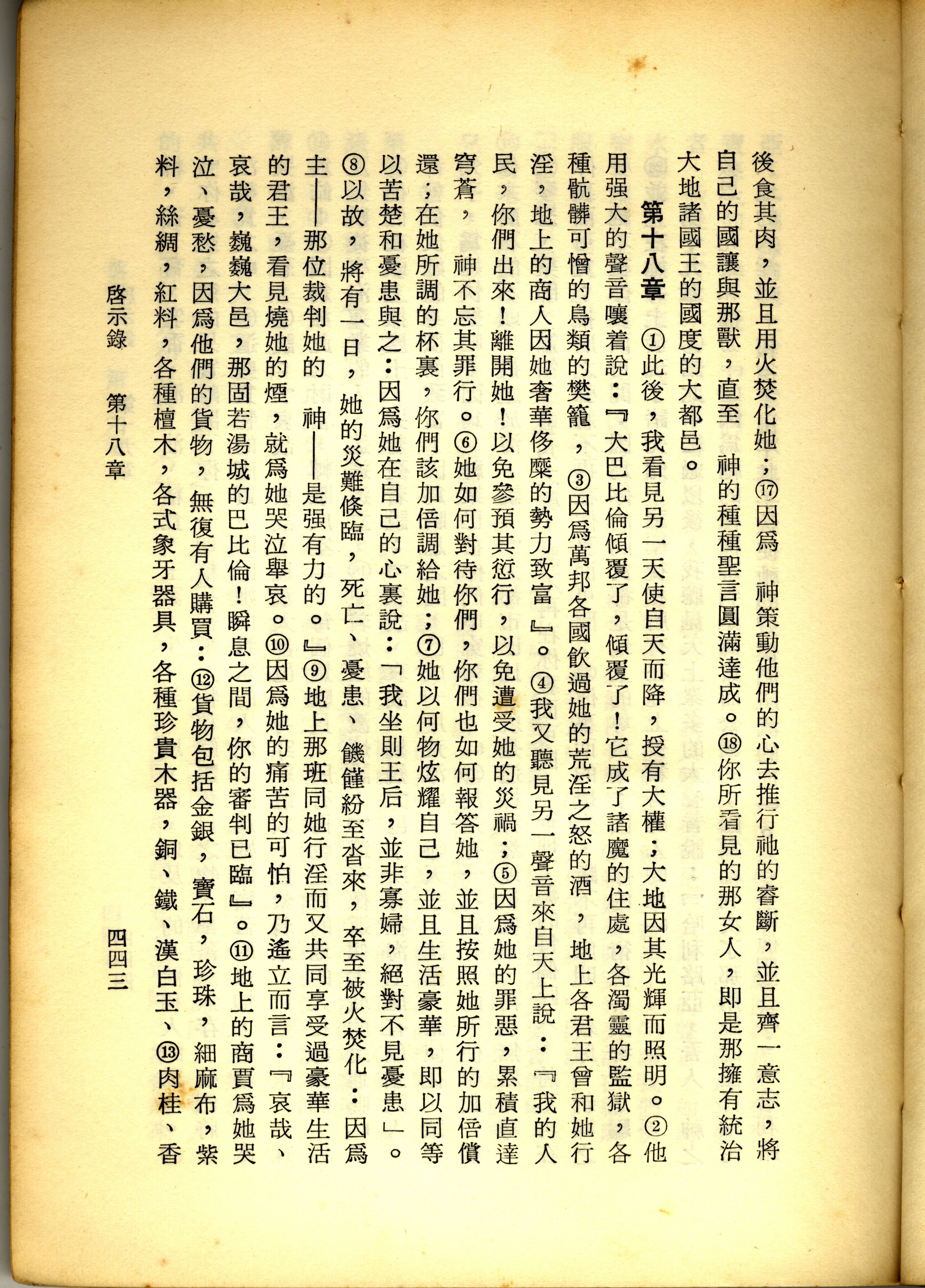 1967年新译新约全集 启示录 17 章 17 节到 18 章 13 节