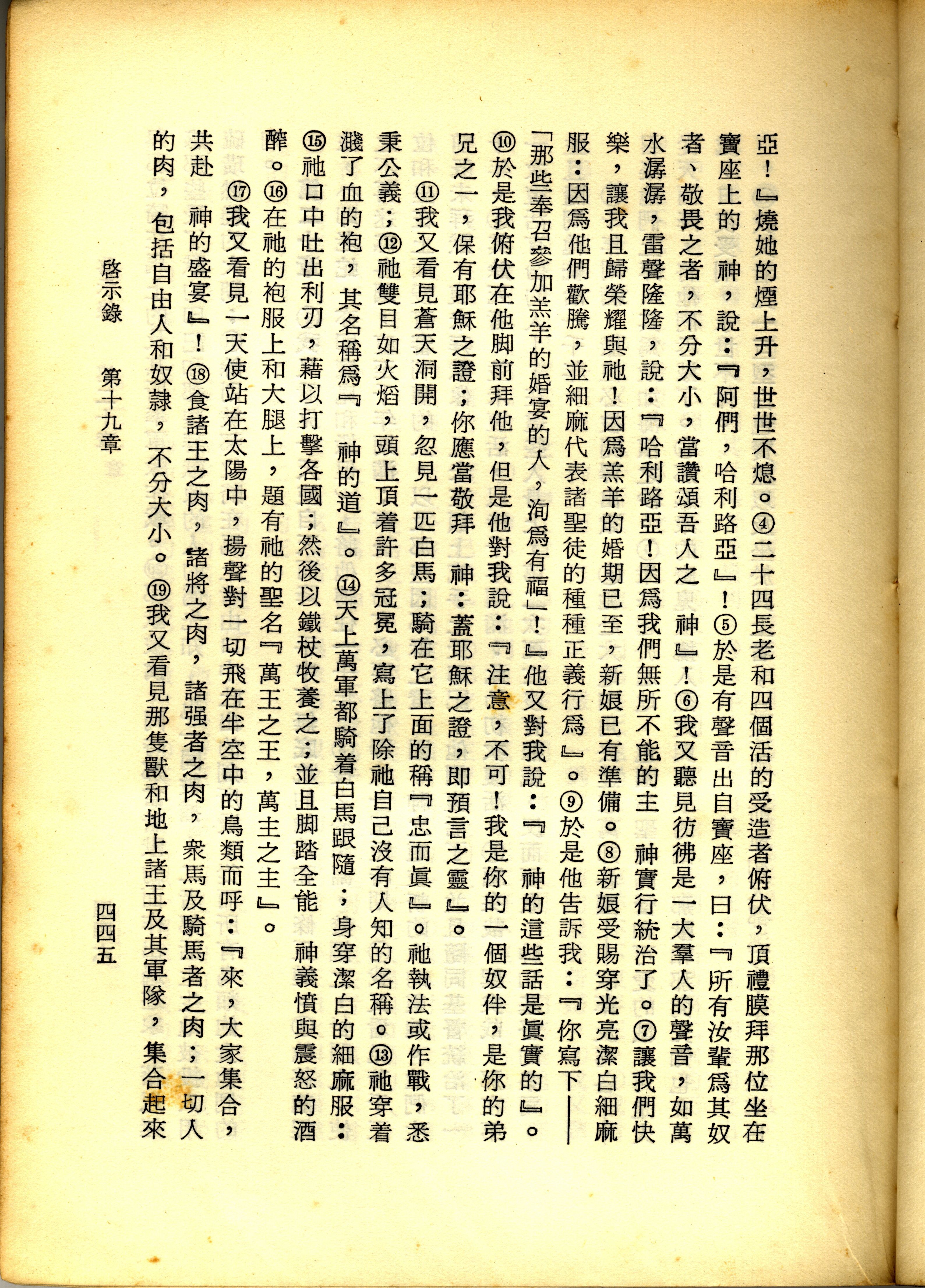 1967年新译新约全集 启示录 19 章 4 节到 19 章 19 节