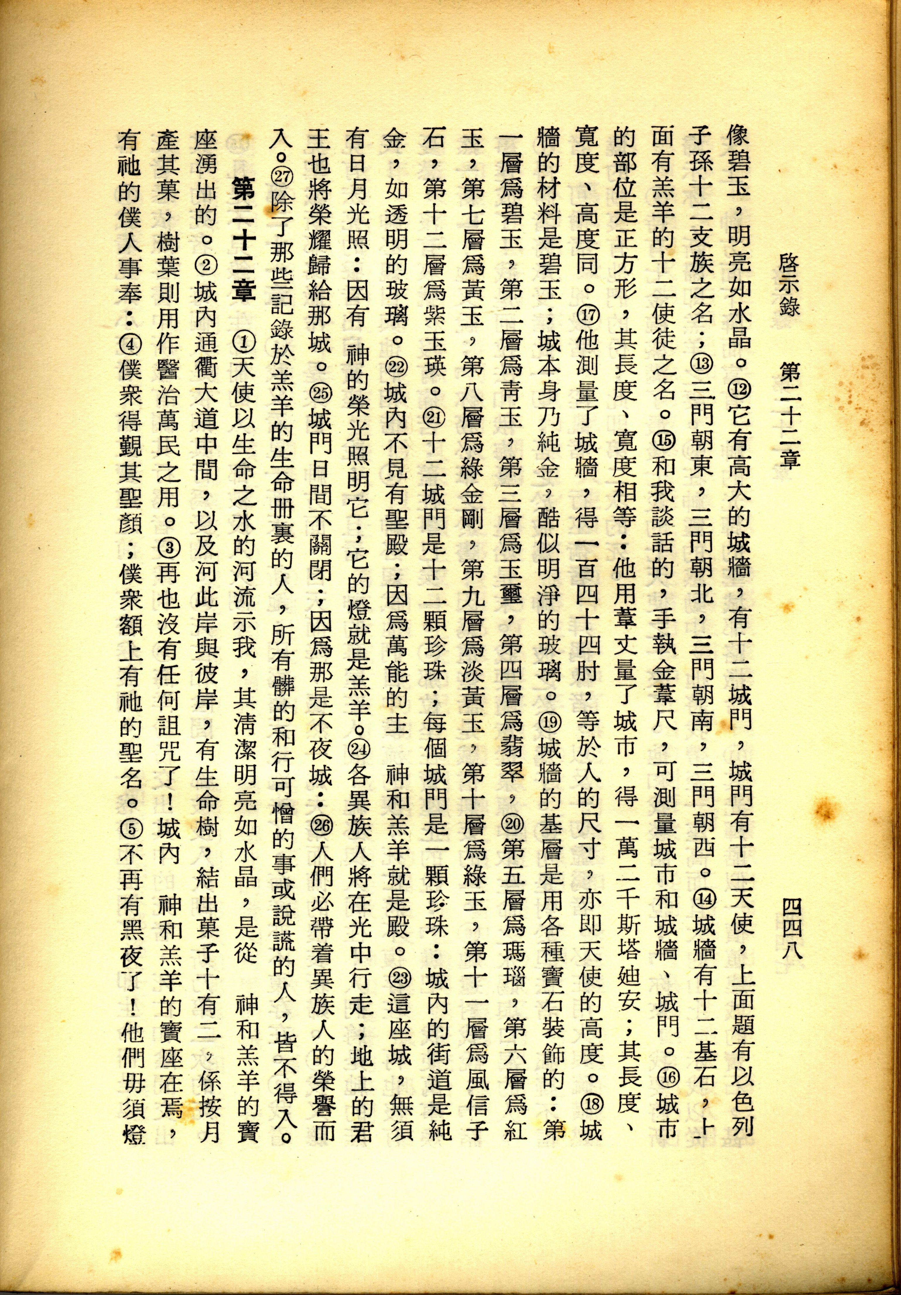 1967年新译新约全集 启示录 21 章 12 节到 22 章 5 节