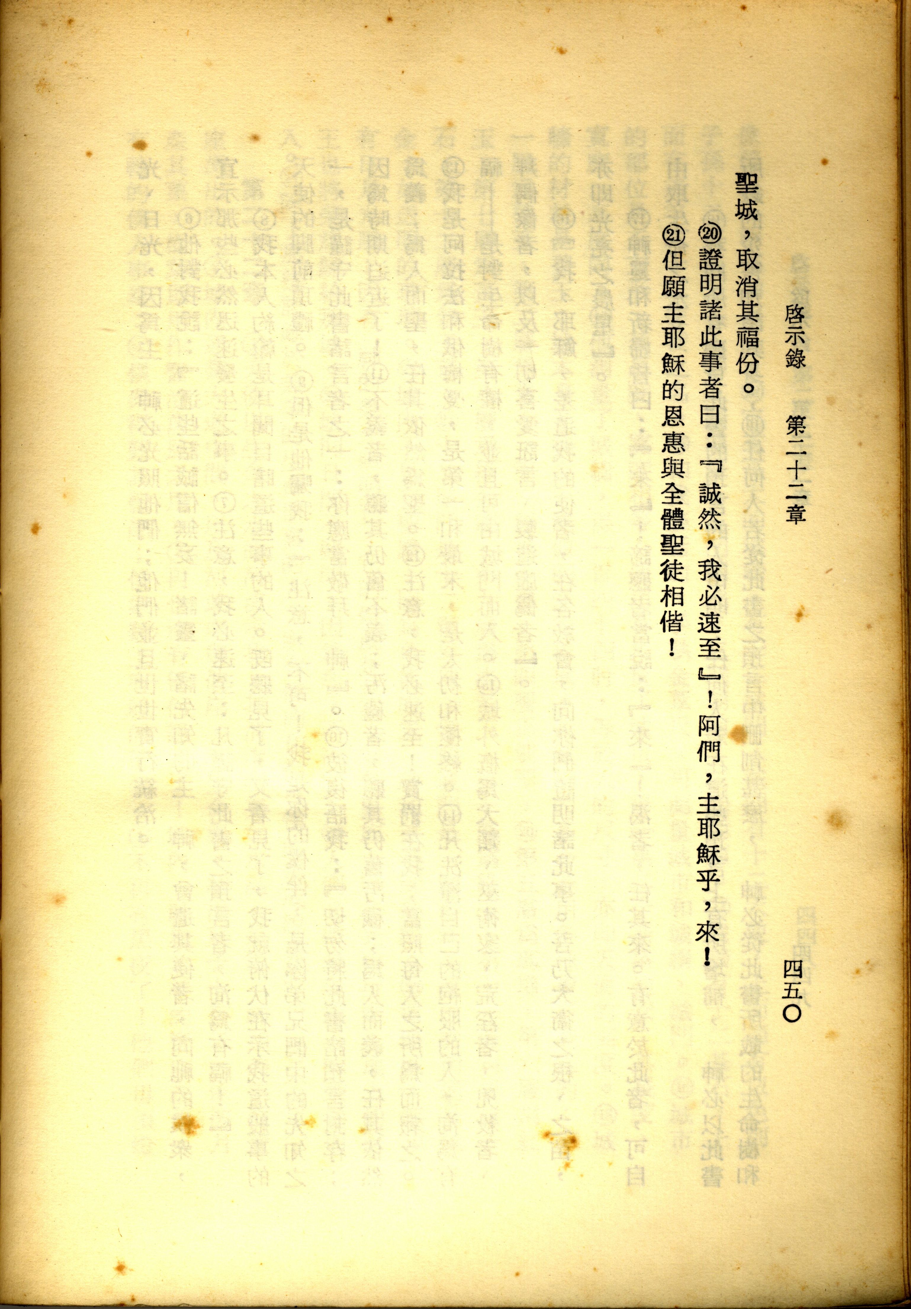 1967年新译新约全集 启示录 22 章 20 节到 22 章 21 节