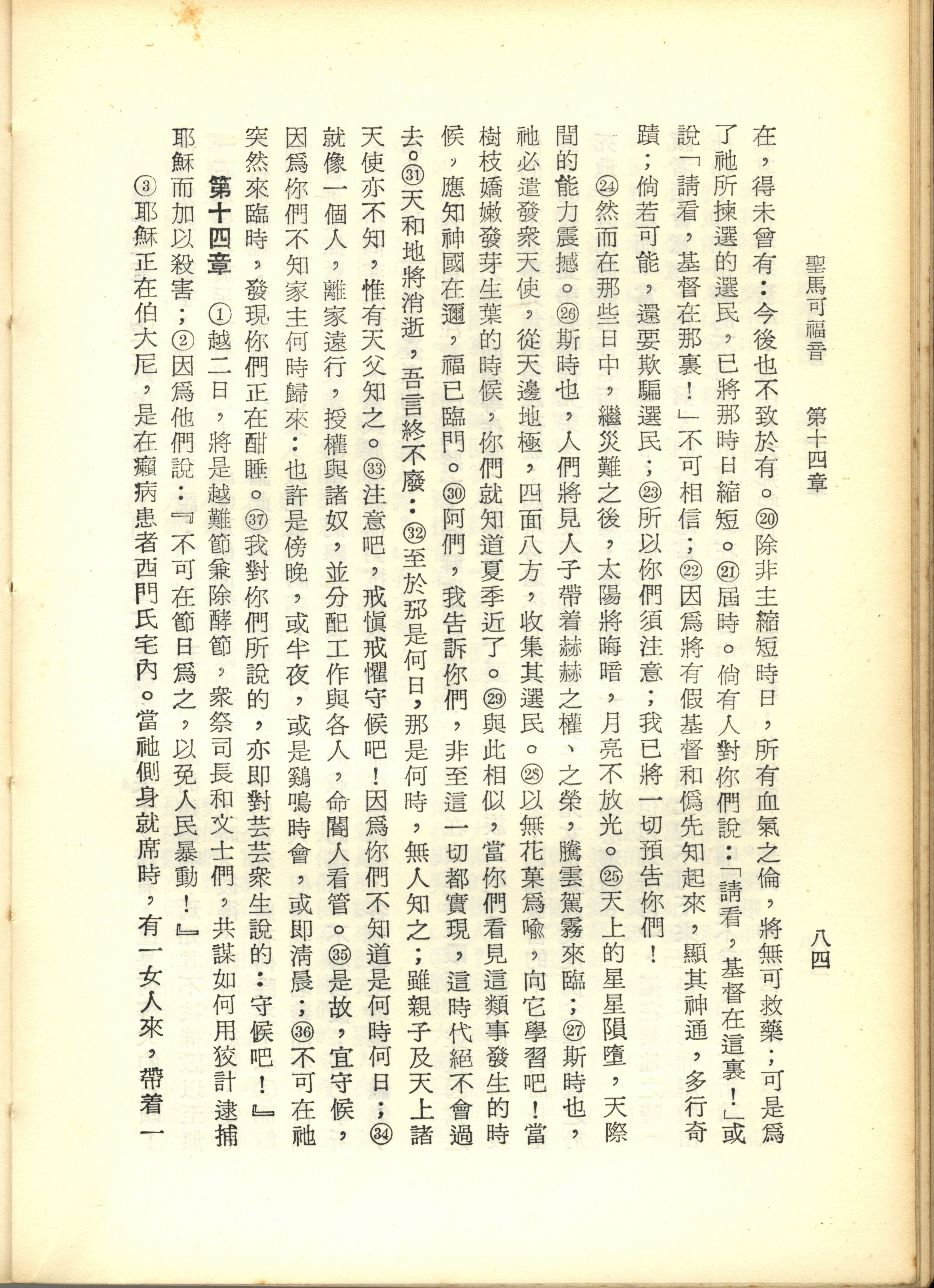 1967年新译新约全集 马可福音 13 章 20 节到 14 章 3 节