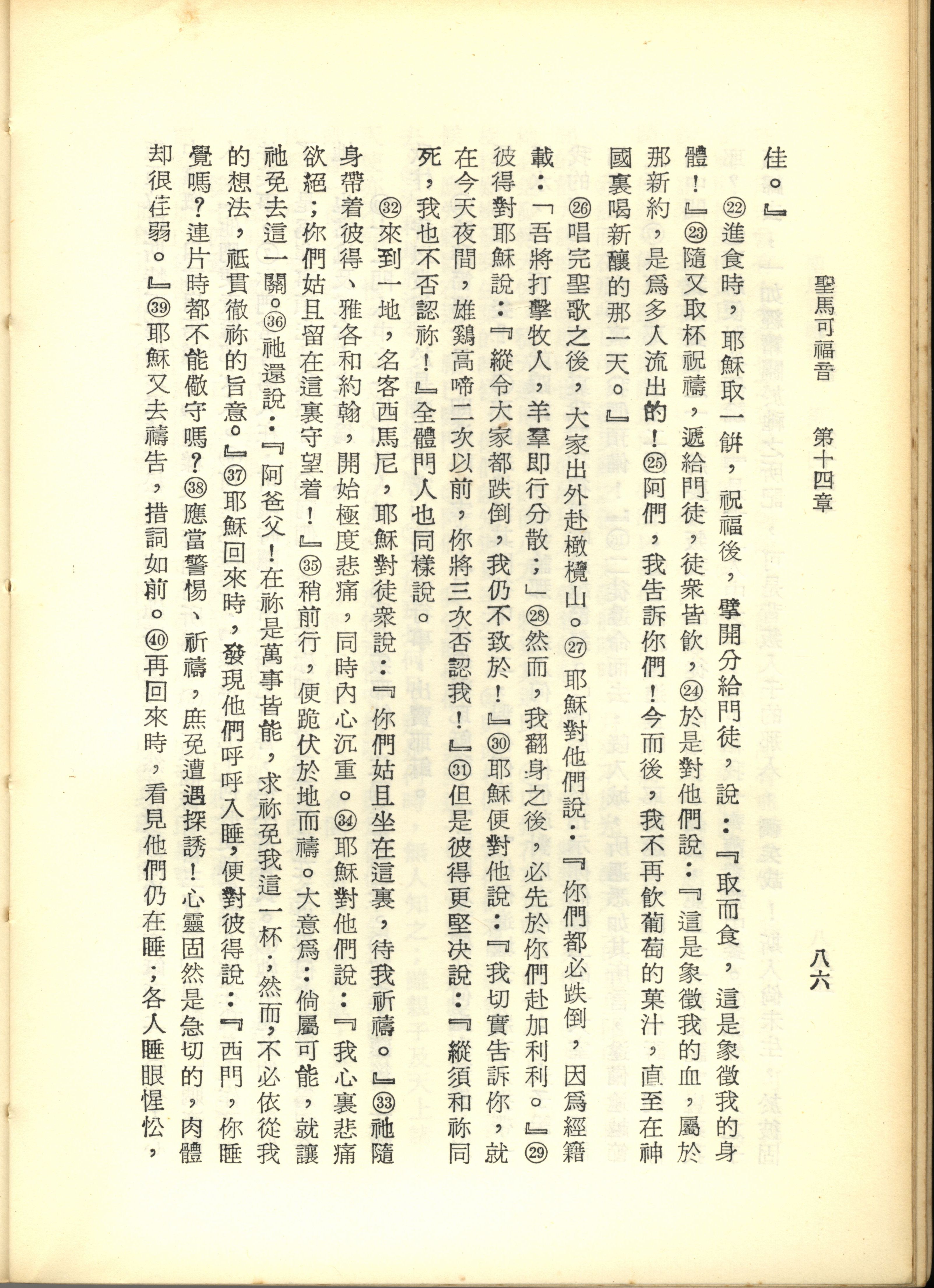 1967年新译新约全集 马可福音 14 章 22 节到 14 章 40 节