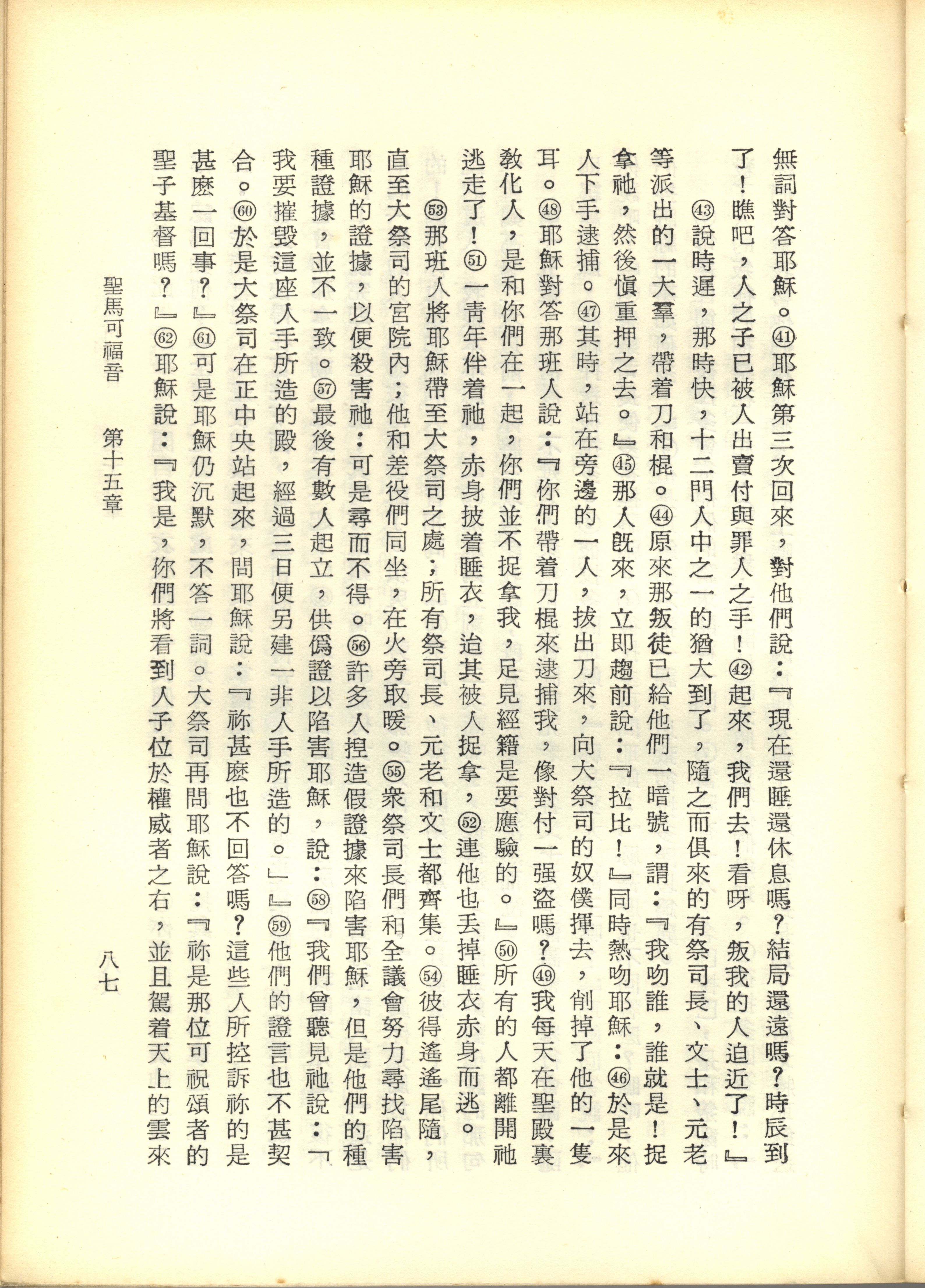 1967年新译新约全集 马可福音 15 章 41 节到 15 章 62 节