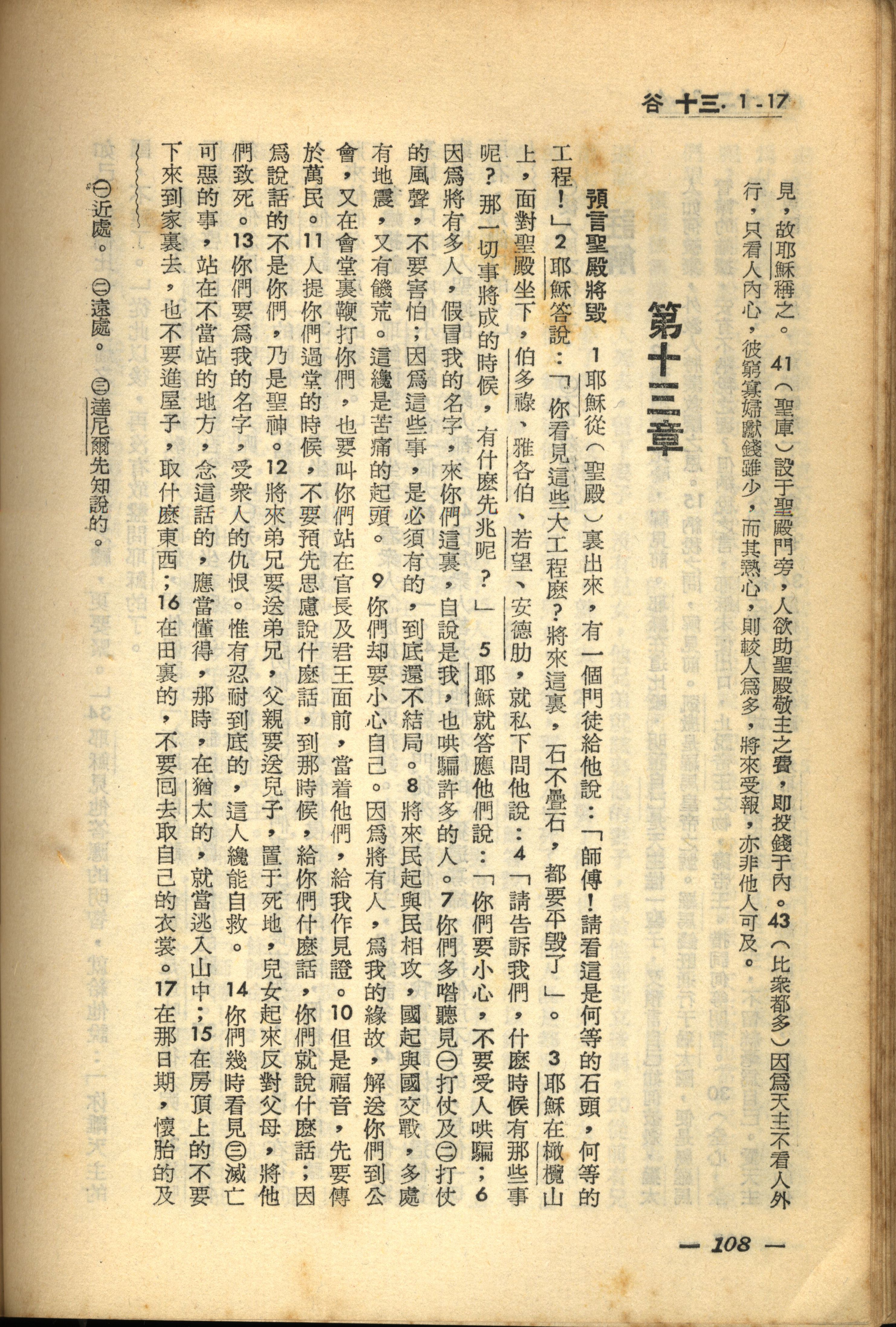 1956年新经全集 马可福音 13 章 1 节到 13 章 17 节
