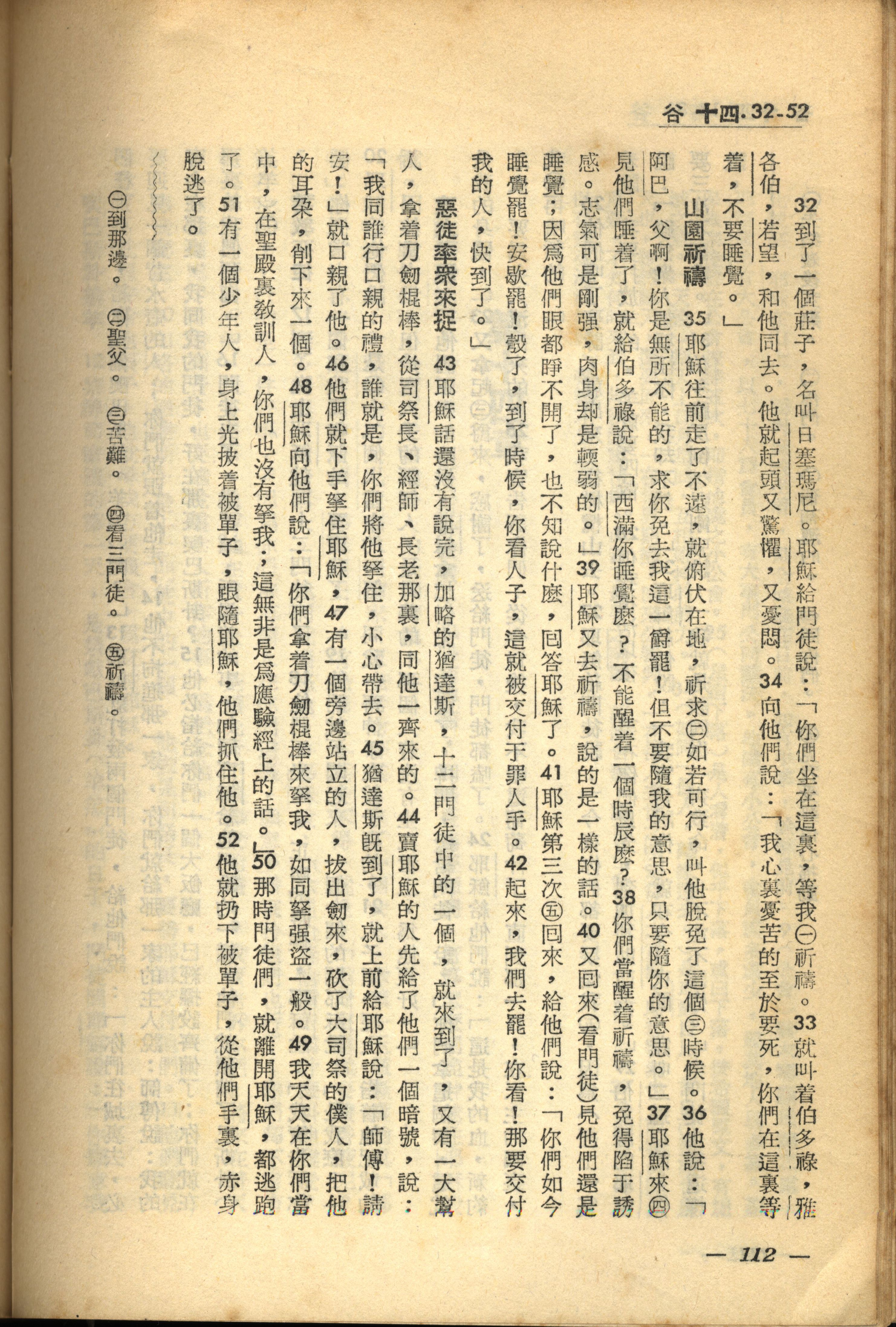 1956年新经全集 马可福音 14 章 32 节到 14 章 52 节