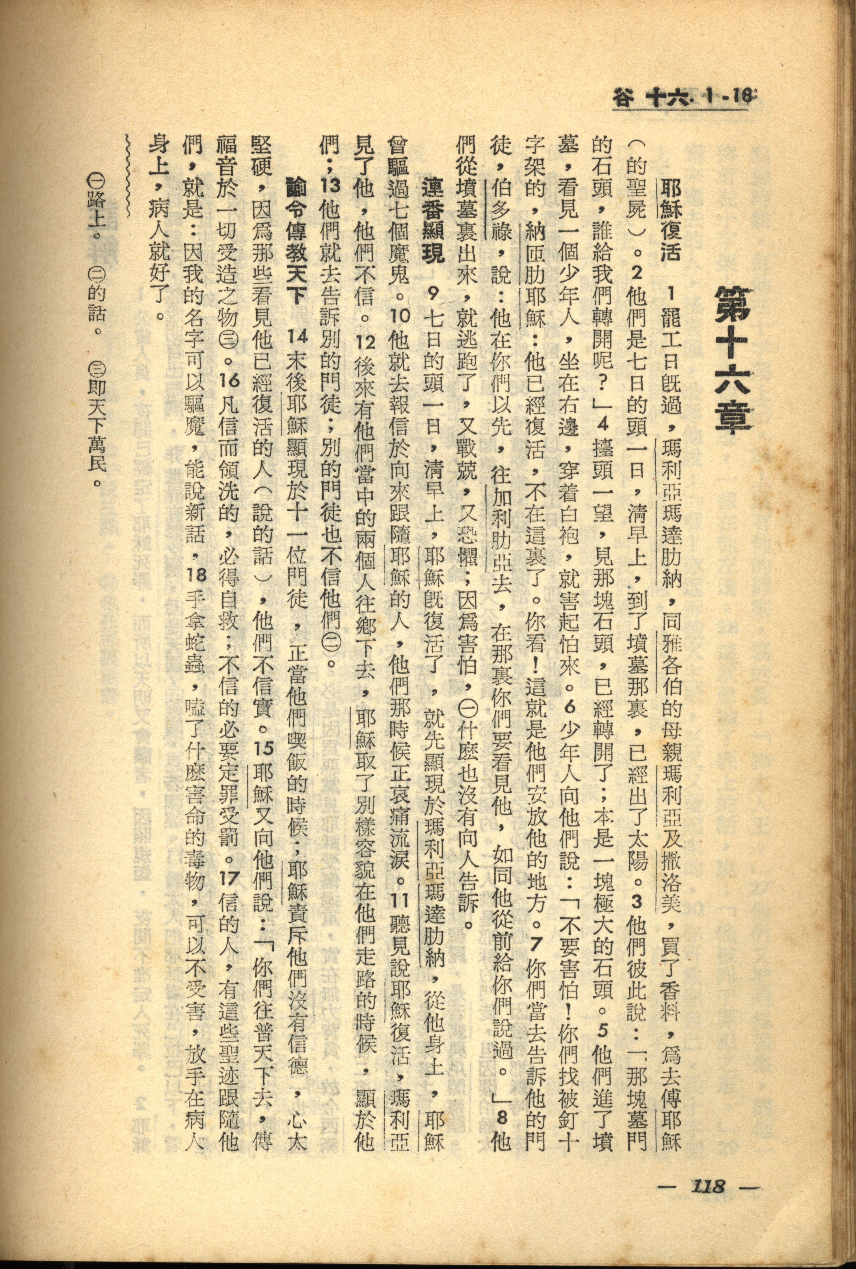 1956年新经全集 马可福音 16 章 1 节到 16 章 16 节