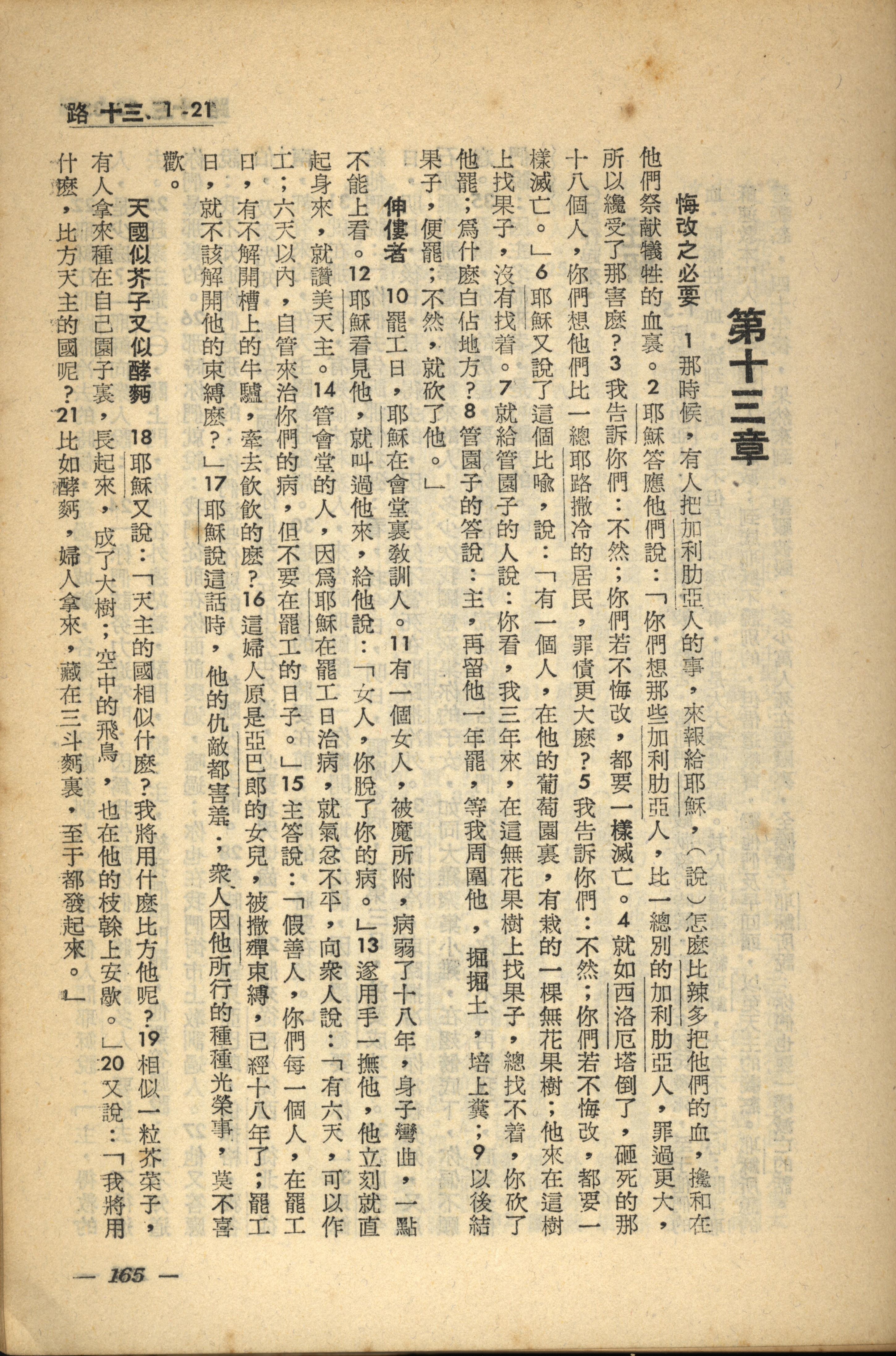 1956年新经全集 路加福音 13 章 1 节到 13 章 21 节