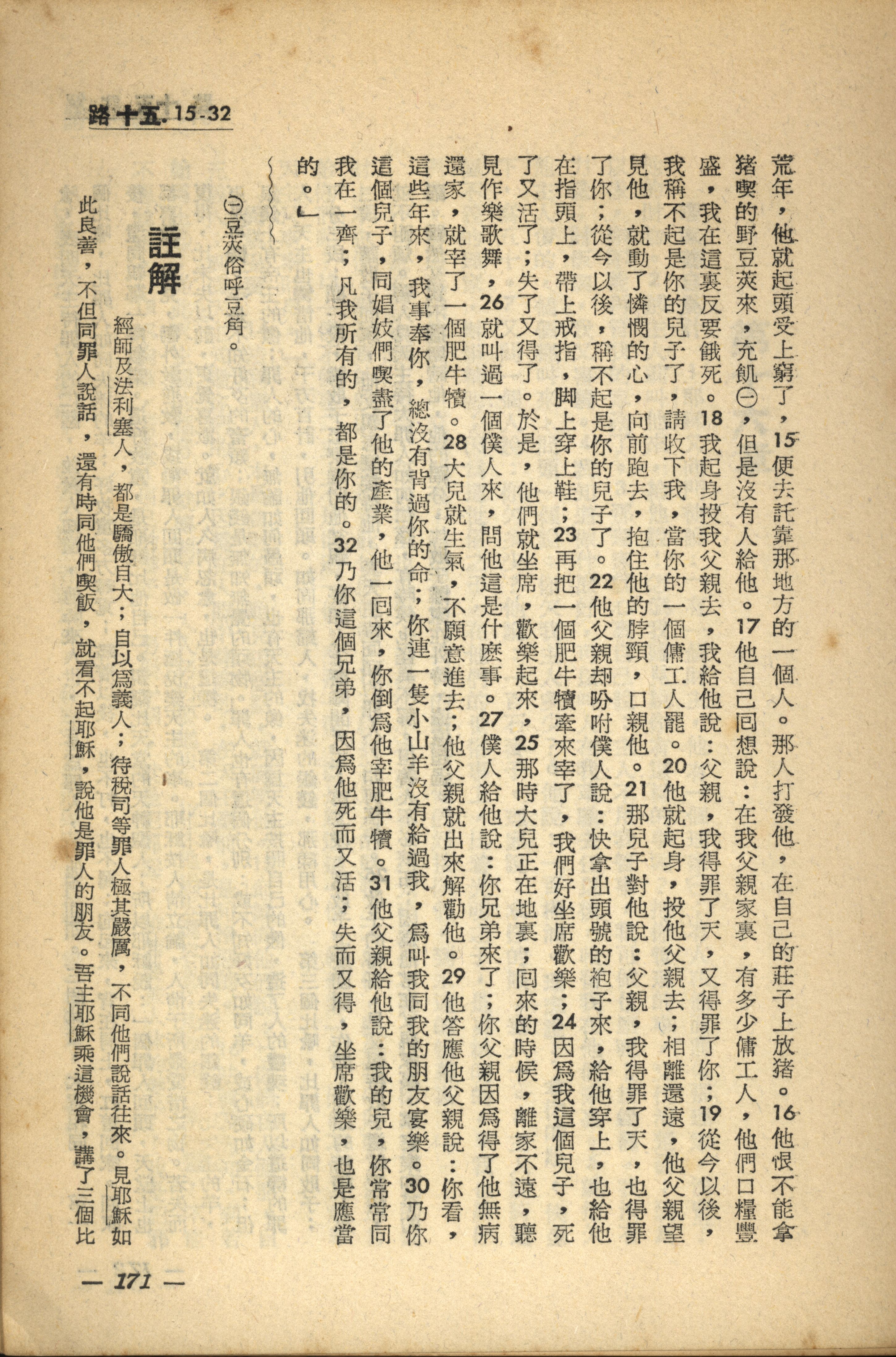 1956年新经全集 路加福音 15 章 15 节到 15 章 32 节