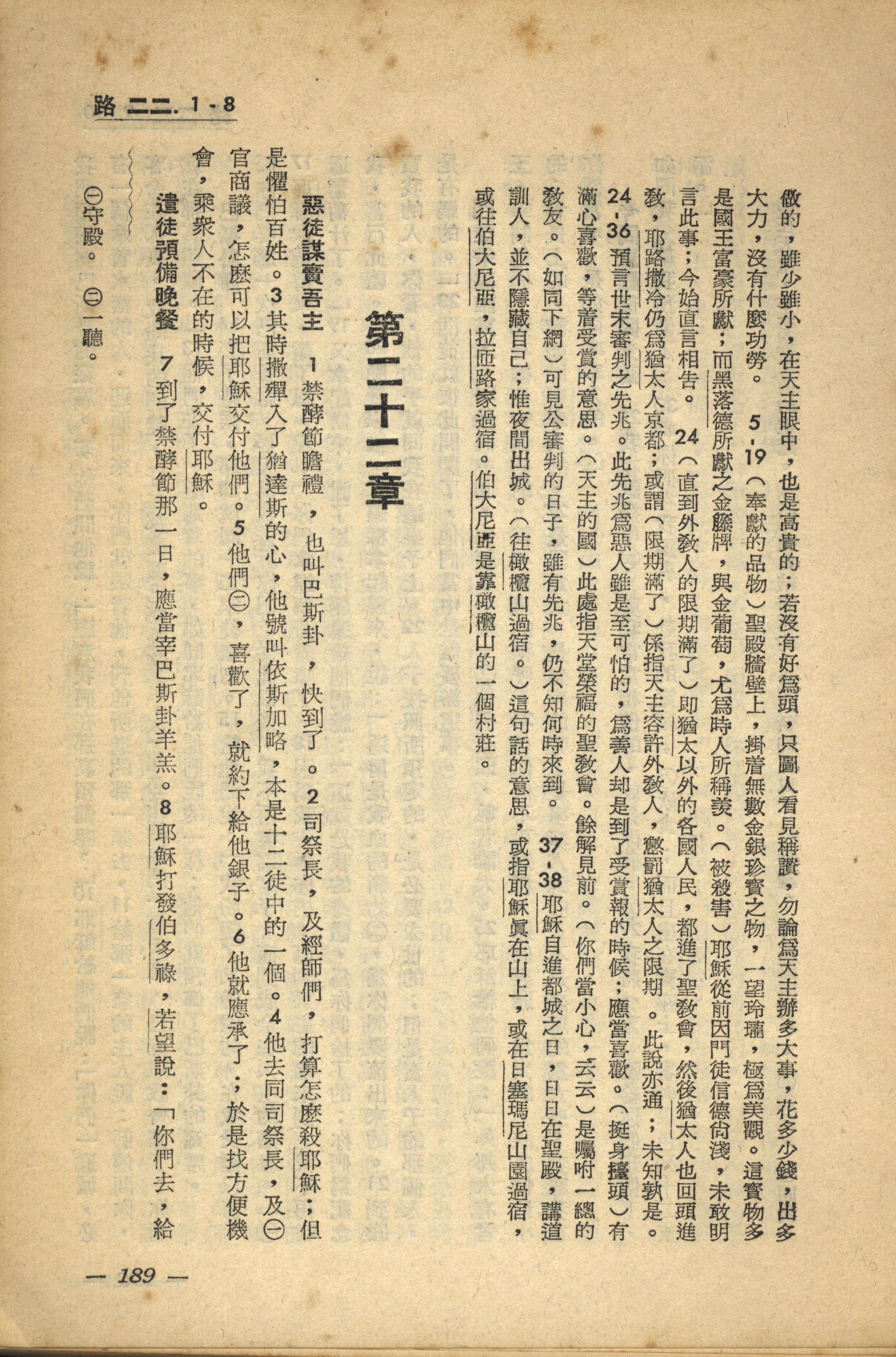 1956年新经全集 路加福音 22 章 1 节到 22 章 8 节