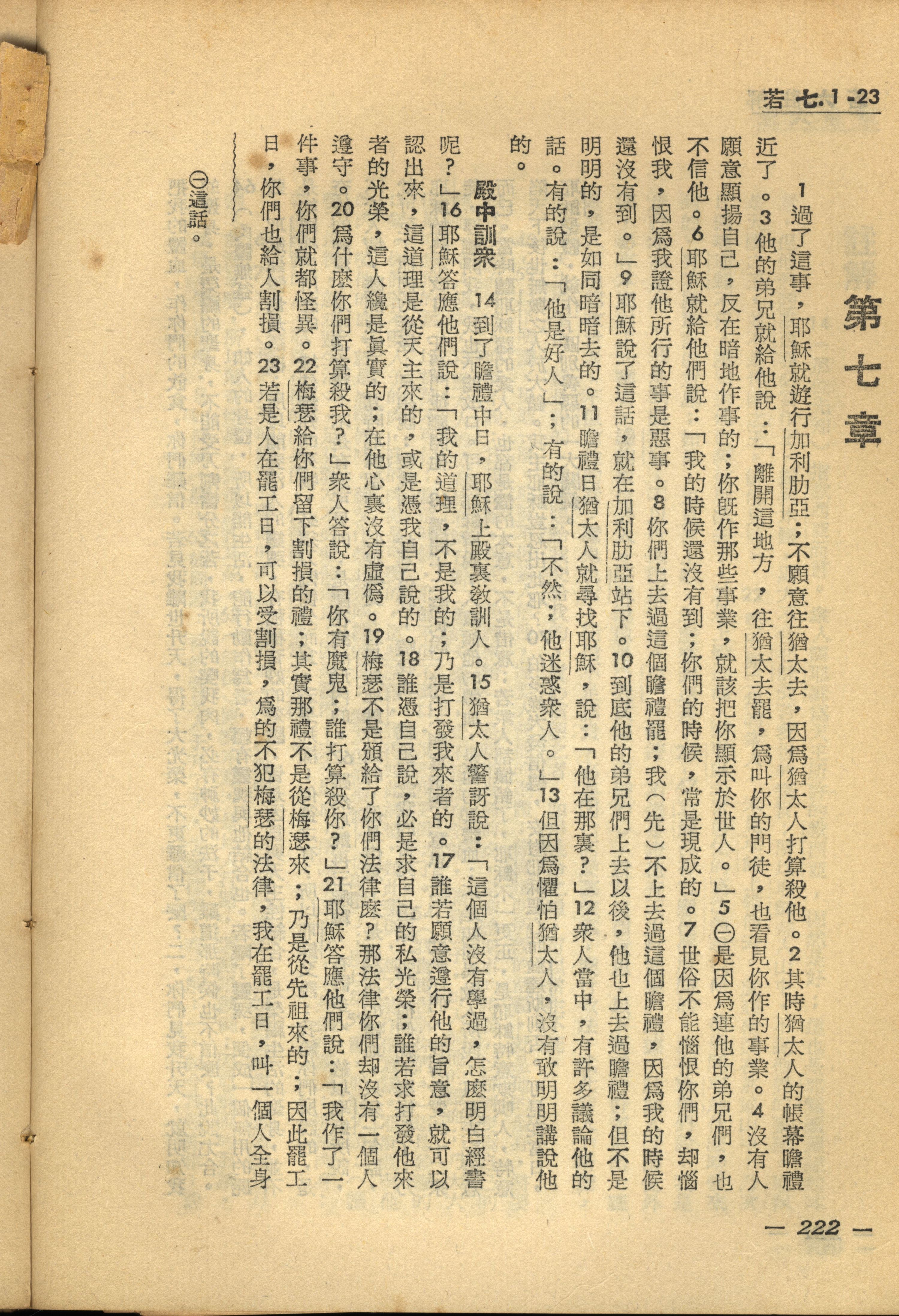 1956年新经全集 约翰福音 7 章 20 节到 7 章 23 节
