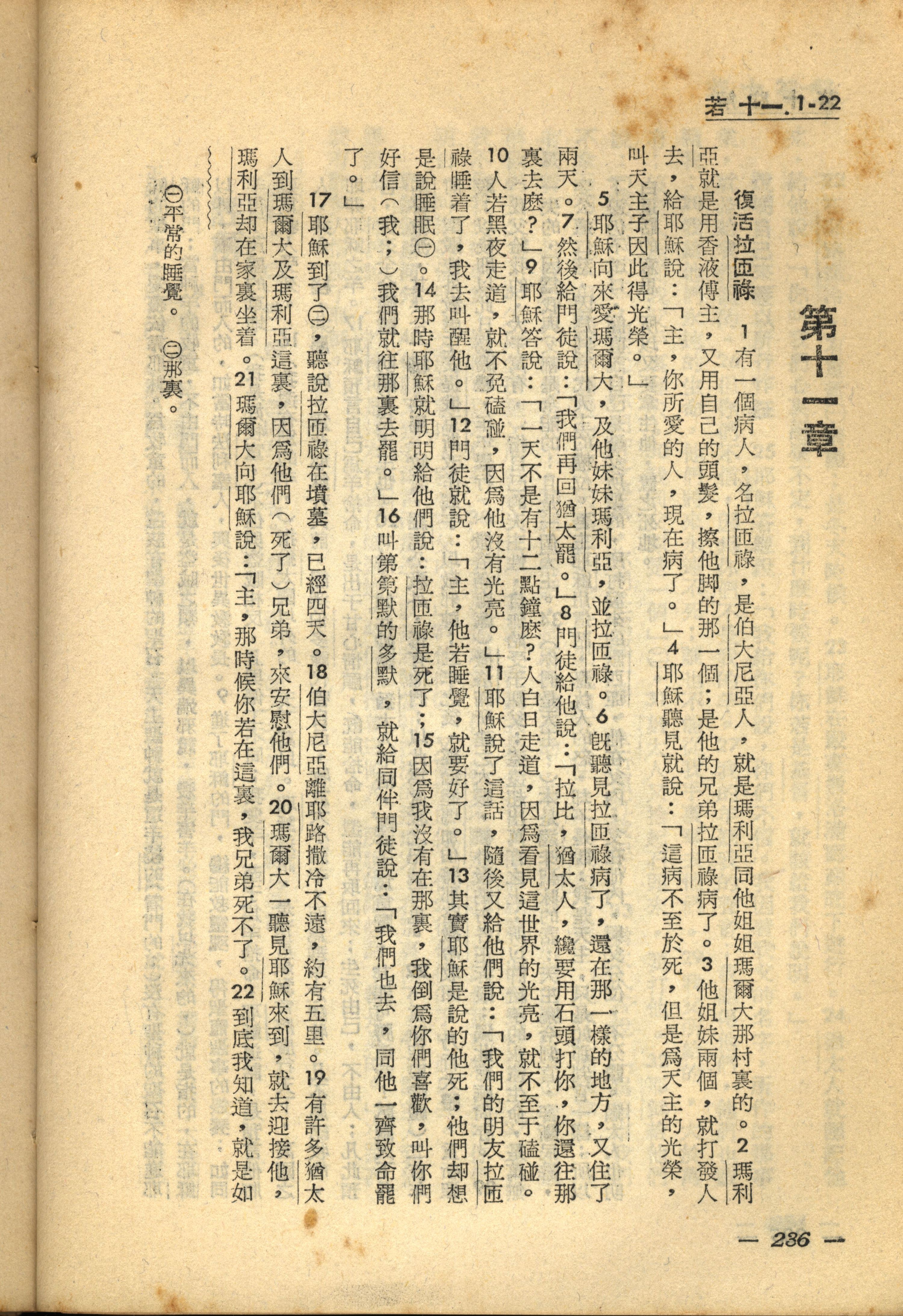 1956年新经全集 约翰福音 11 章 1 节到 11 章 22 节
