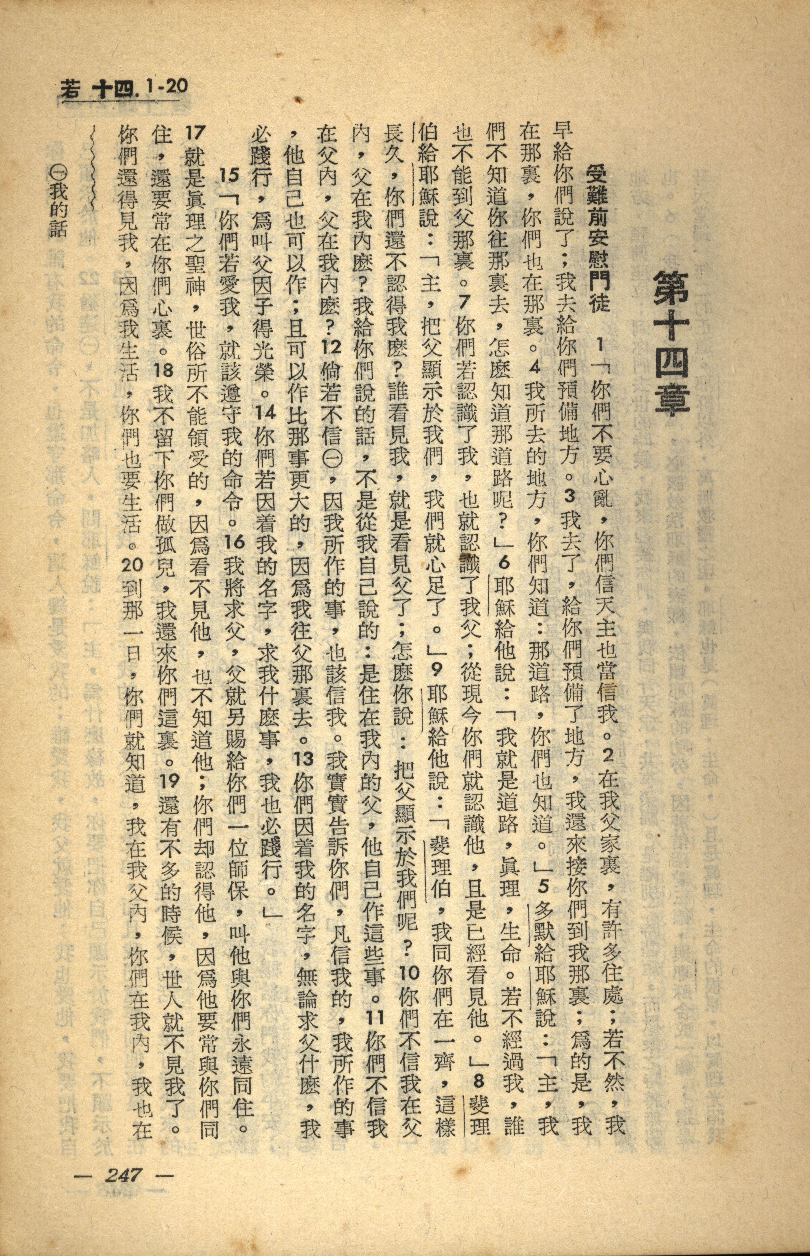 1956年新经全集 约翰福音 14 章 1 节到 14 章 20 节