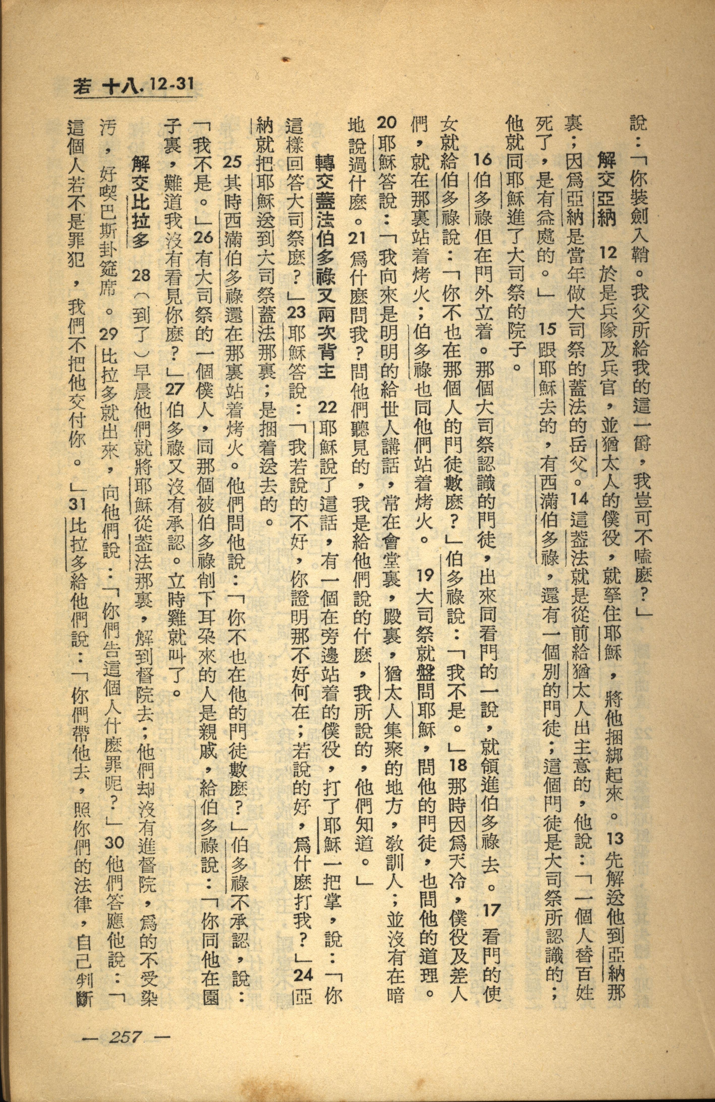 1956年新经全集 约翰福音 18 章 12 节到 18 章 31 节