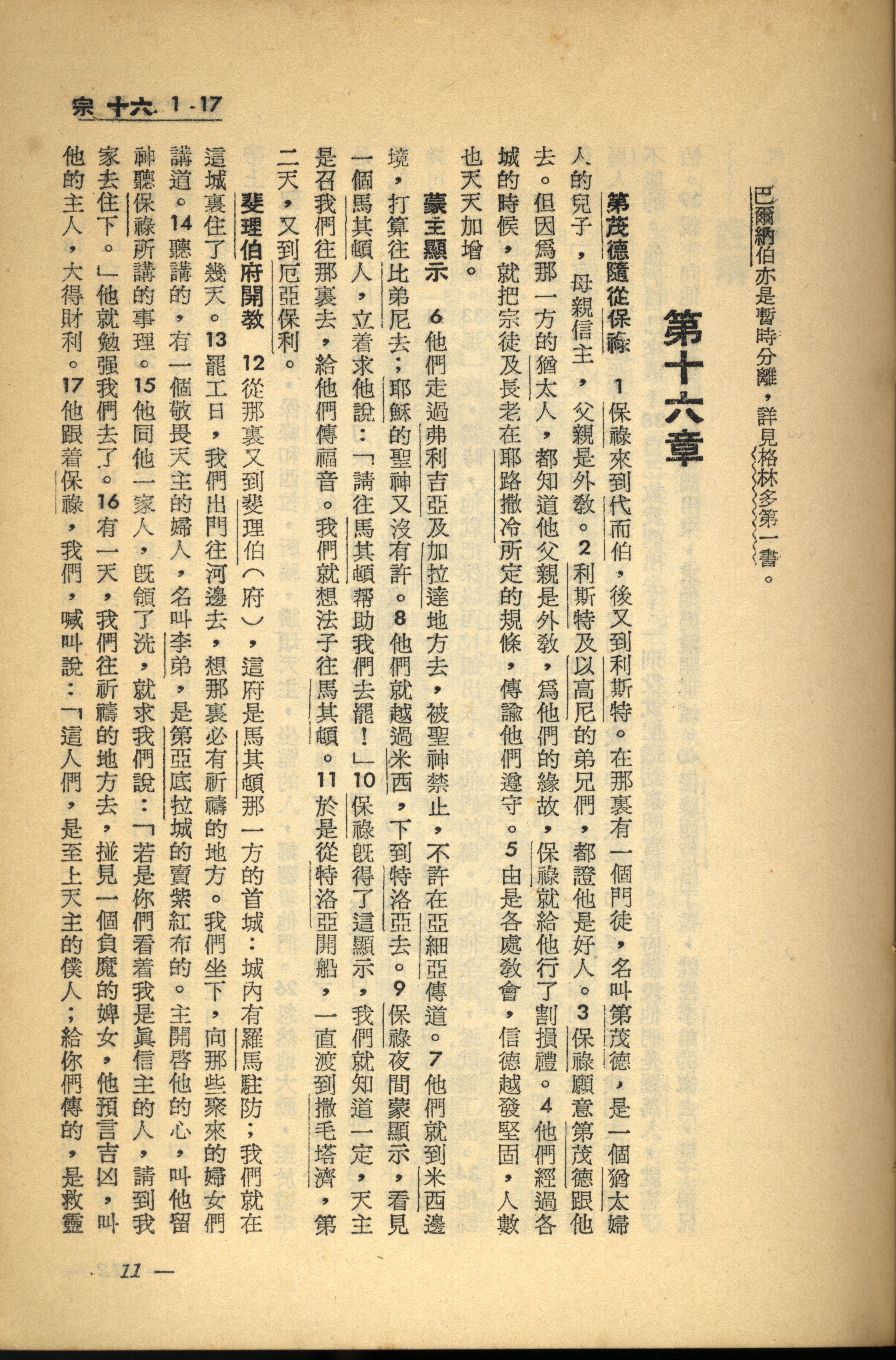 1956年新经全集 使徒行传 16 章 1 节到 16 章 17 节