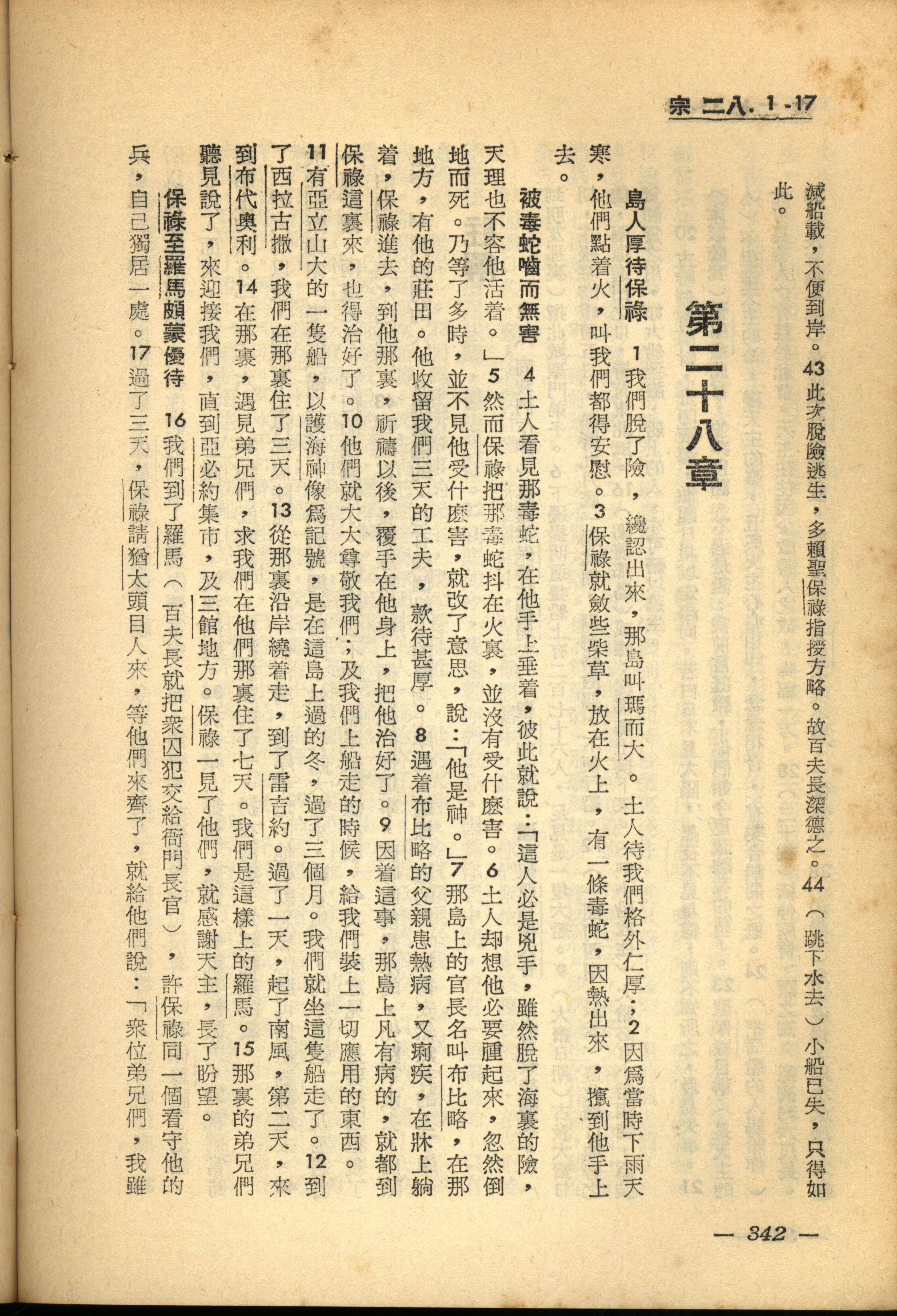 1956年新经全集 使徒行传 28 章 1 节到 28 章 17 节