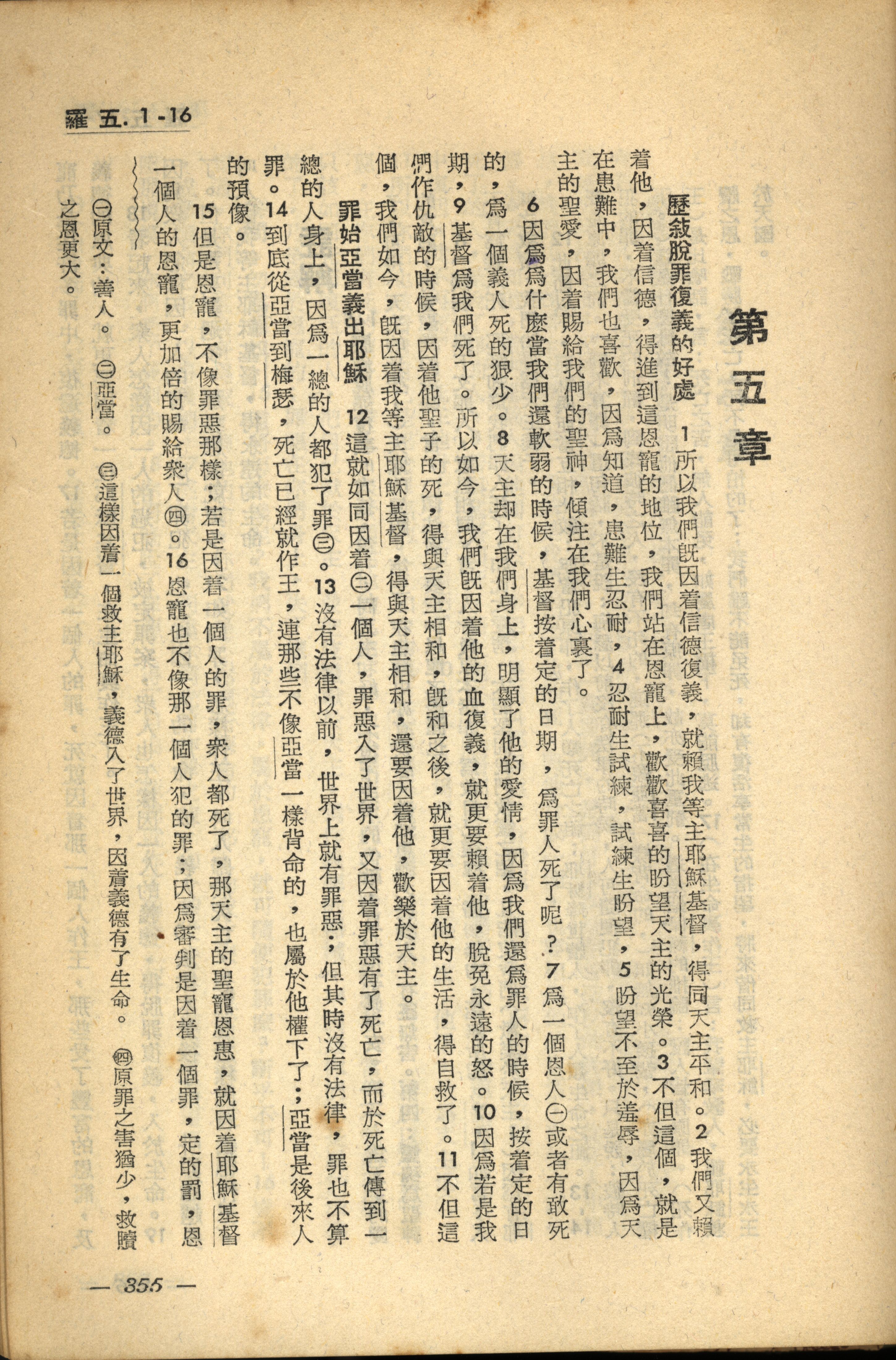 1956年新经全集 罗马书 5 章 1 节到 5 章 16 节