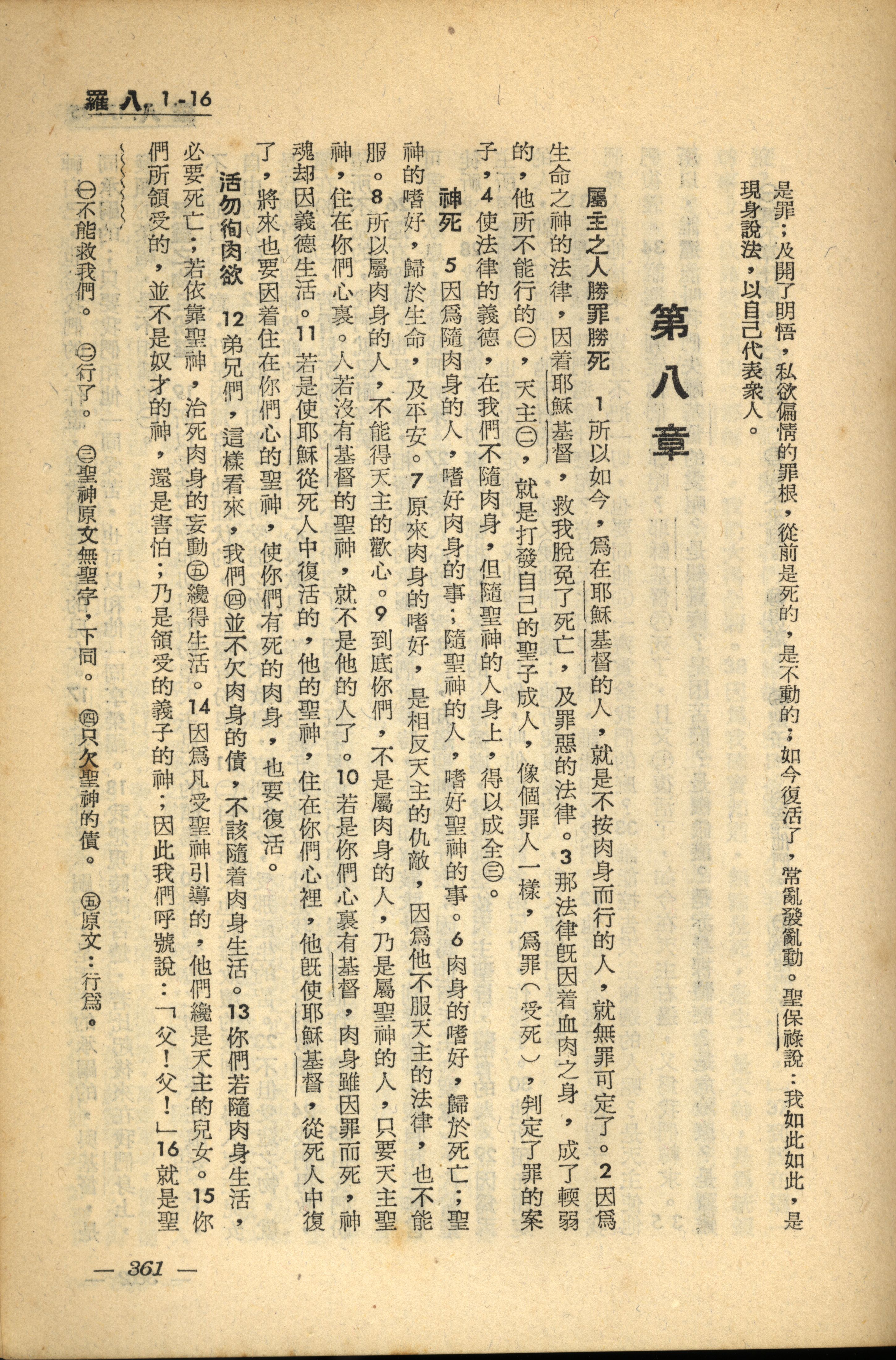 1956年新经全集 罗马书 8 章 1 节到 8 章 16 节