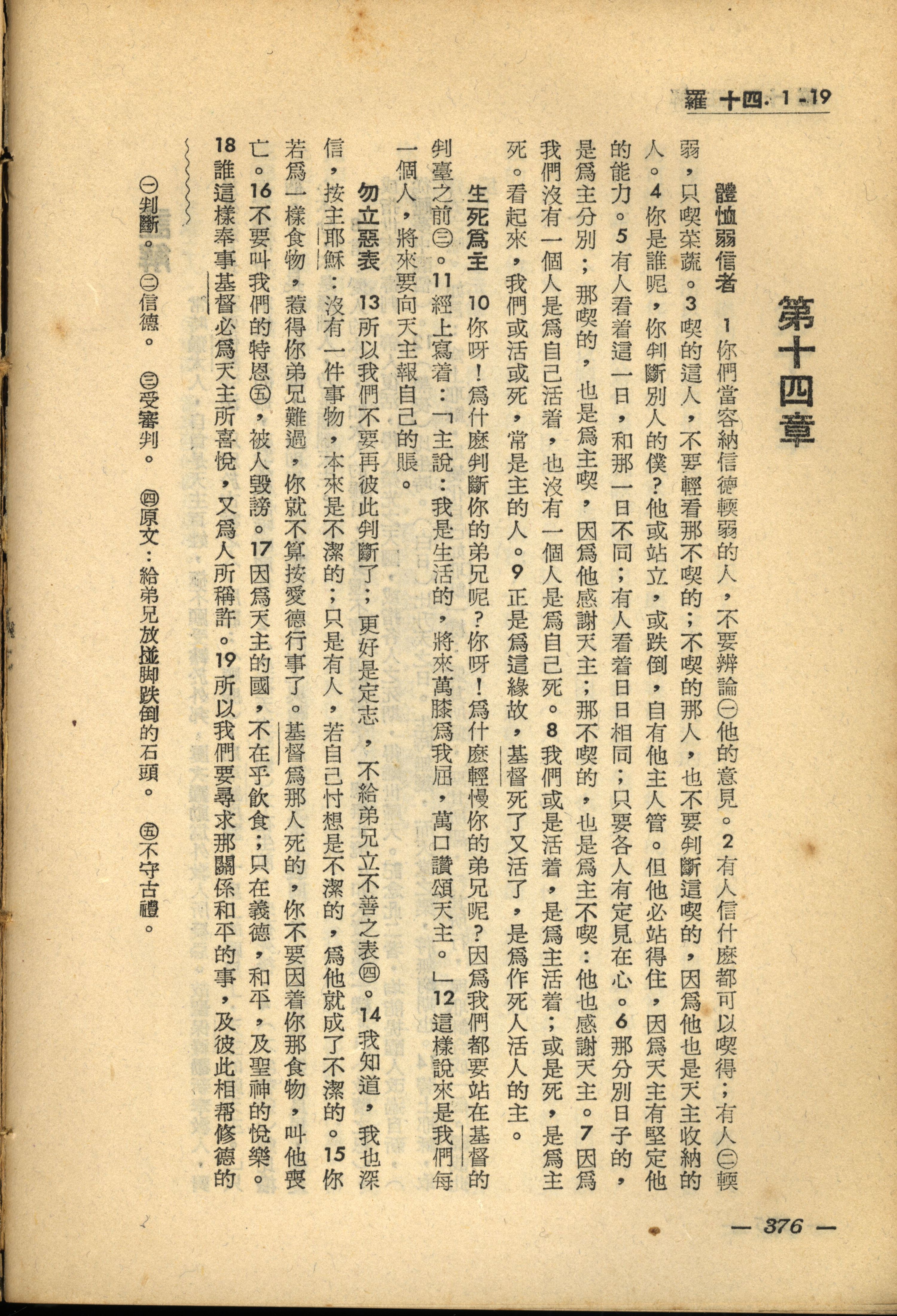 1956年新经全集 罗马书 14 章 1 节到 14 章 19 节