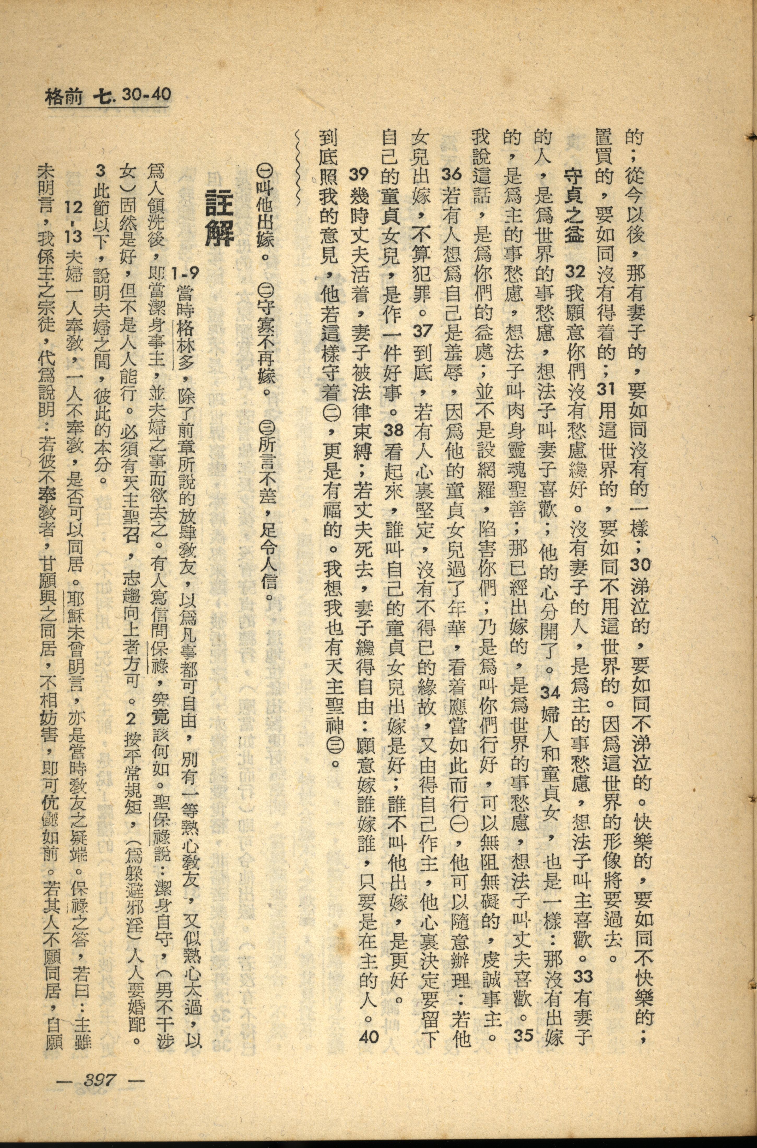 1956年新经全集 哥林多前书 7 章 30 节到 7 章 40 节