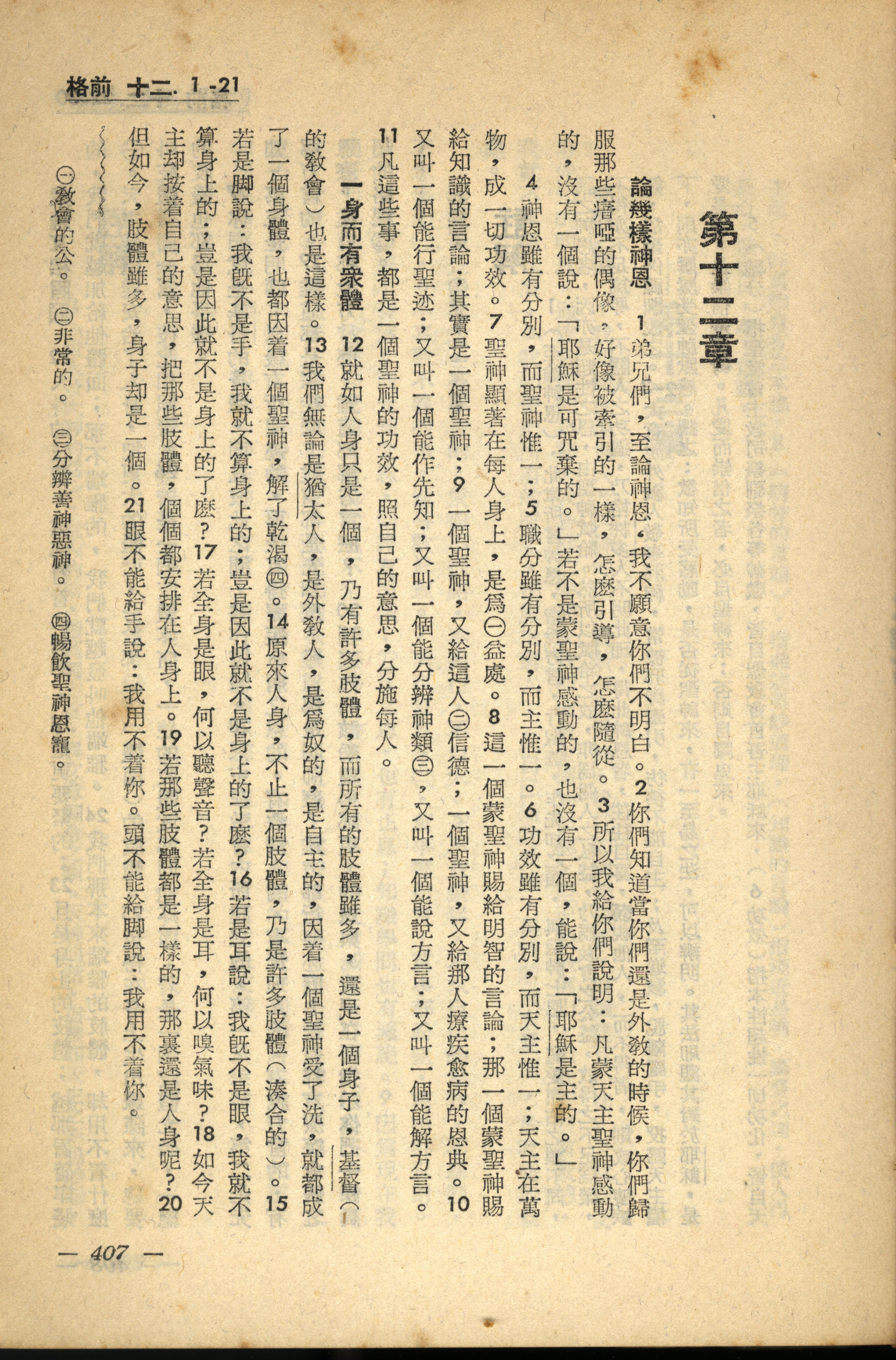1956年新经全集 哥林多前书 12 章 1 节到 12 章 21 节