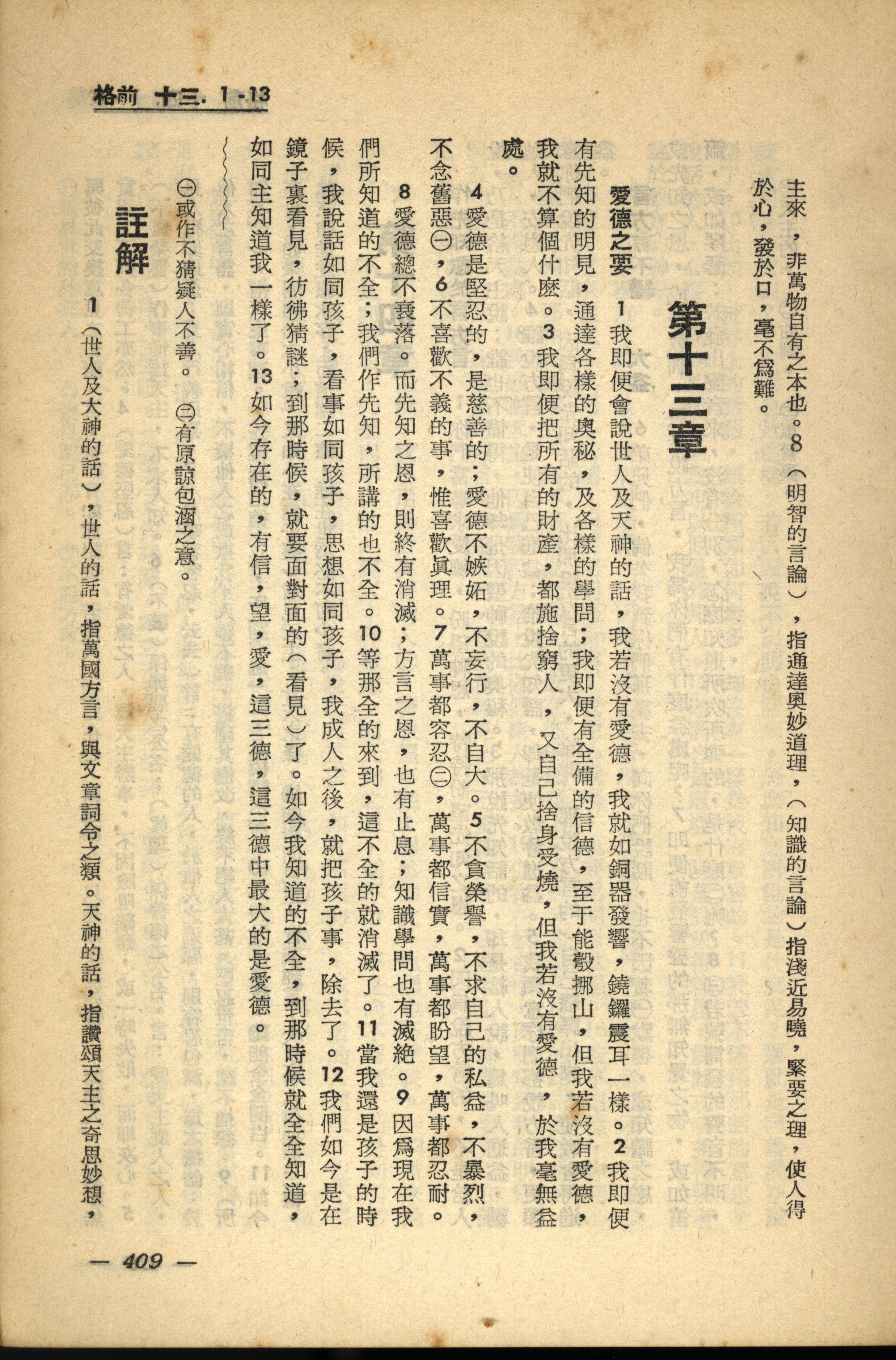 1956年新经全集 哥林多前书 13 章 1 节到 13 章 13 节