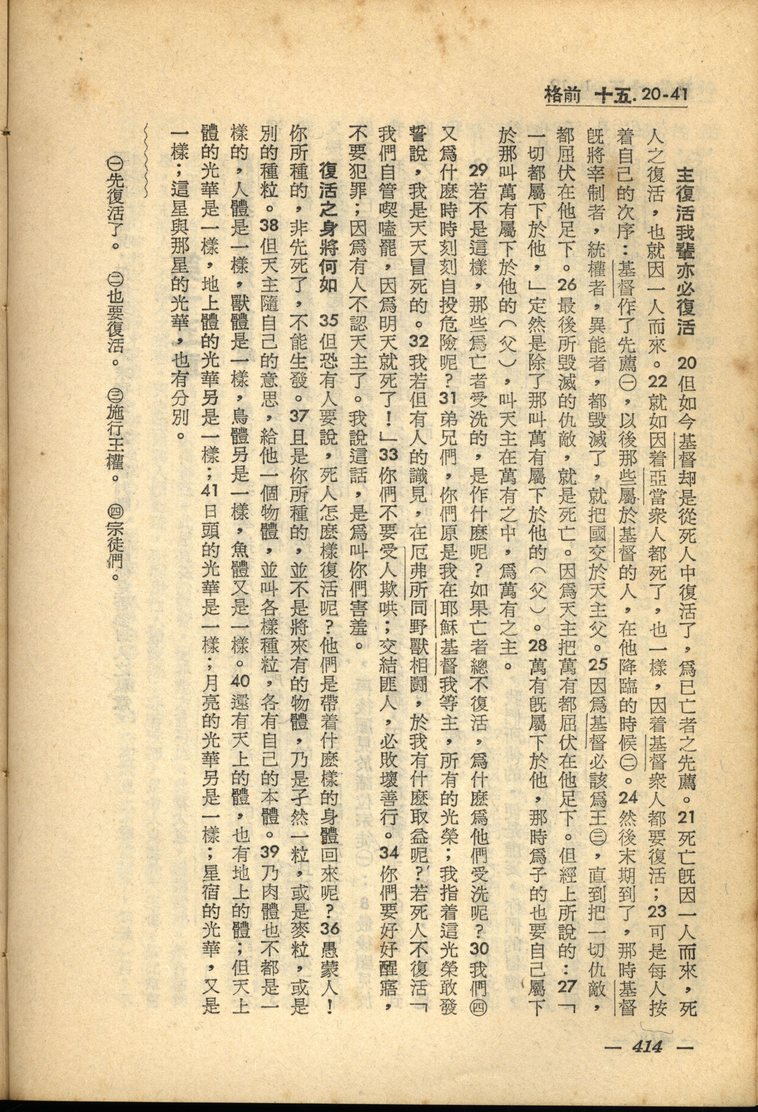 1956年新经全集 哥林多前书 15 章 20 节到 15 章 41 节