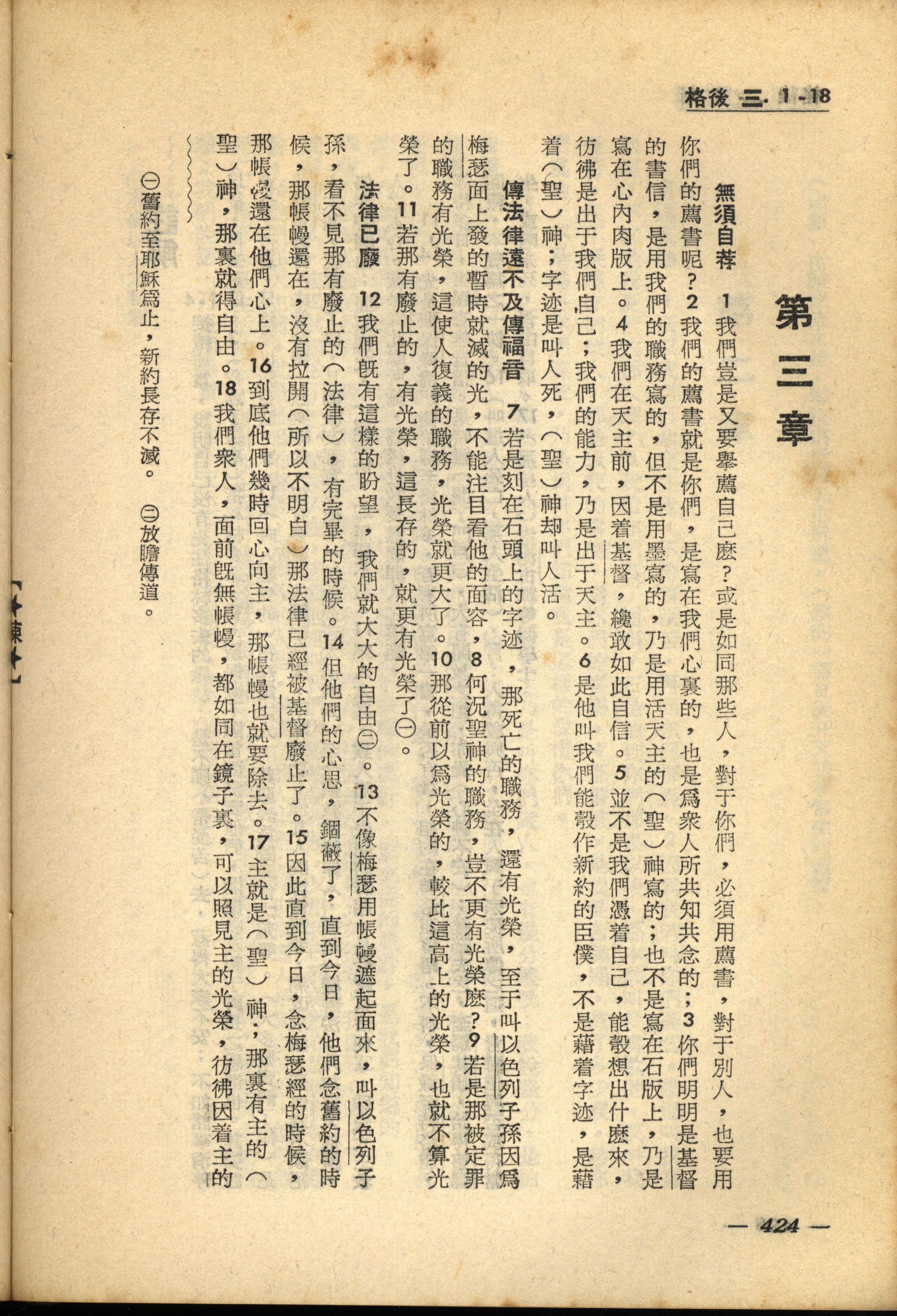 1956年新经全集 哥林多后书 3 章 1 节到 3 章 18 节