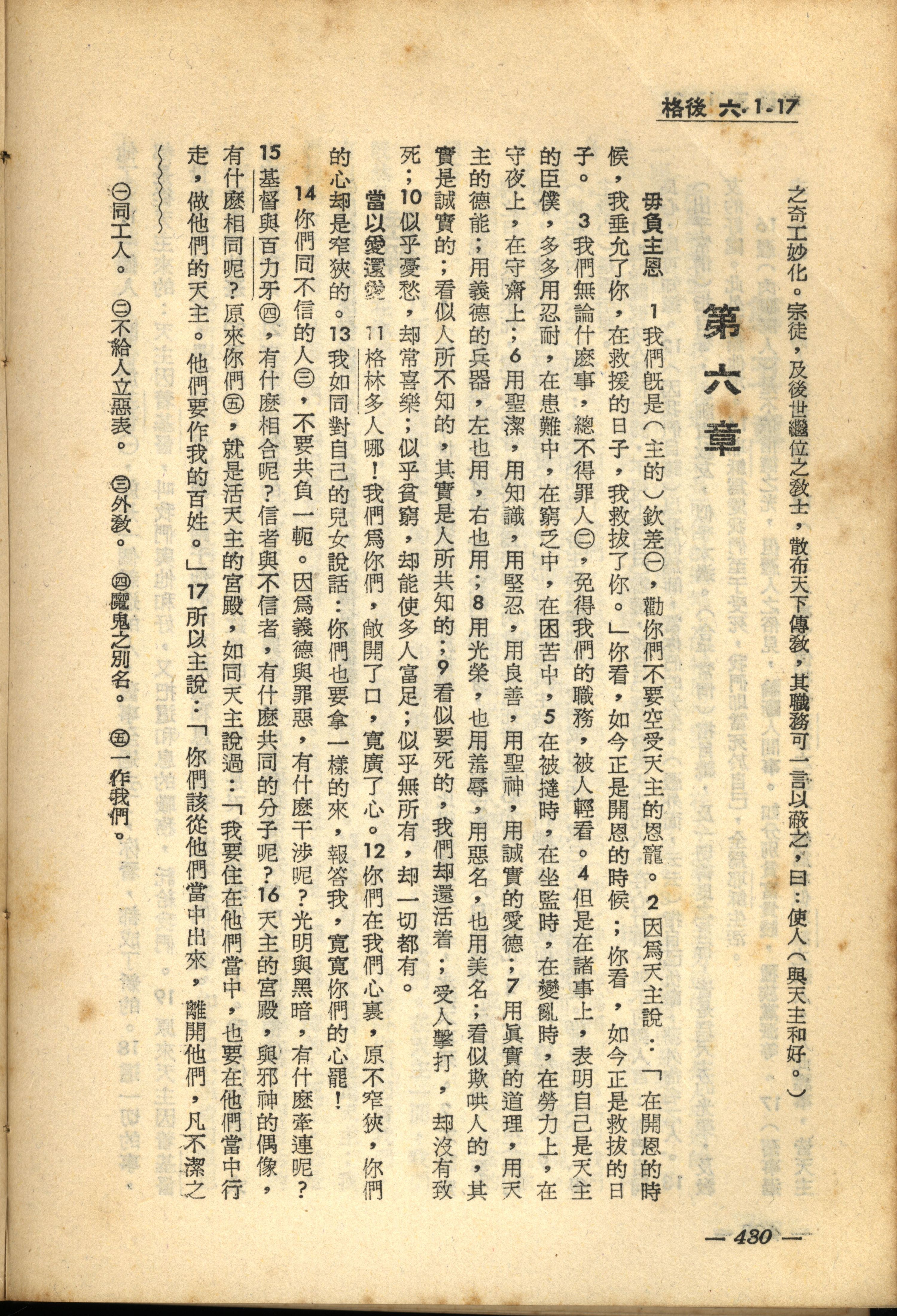 1956年新经全集 哥林多后书 6 章 1 节到 6 章 17 节