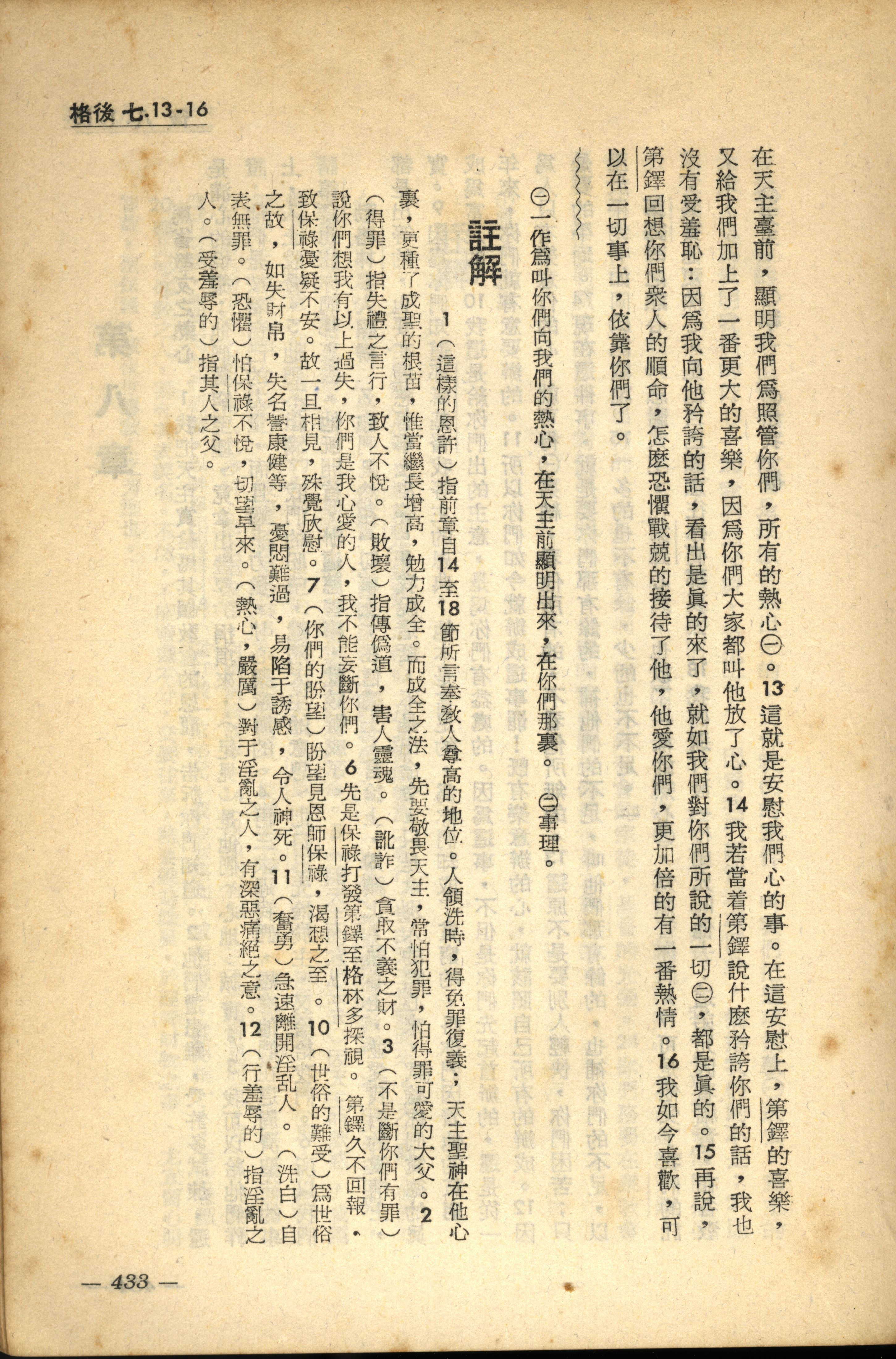 1956年新经全集 哥林多后书 7 章 13 节到 7 章 16 节
