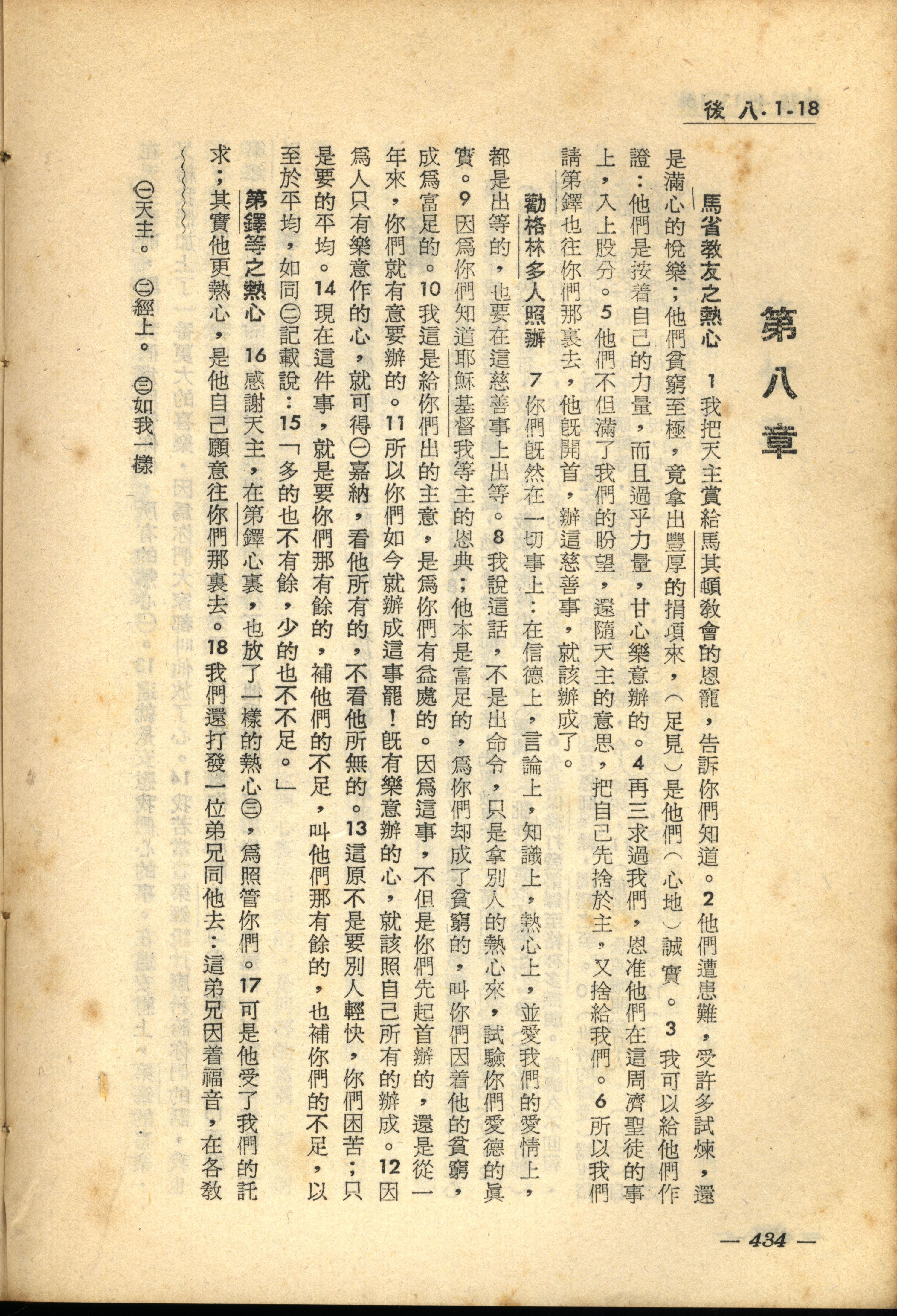 1956年新经全集 哥林多后书 8 章 1 节到 8 章 18 节