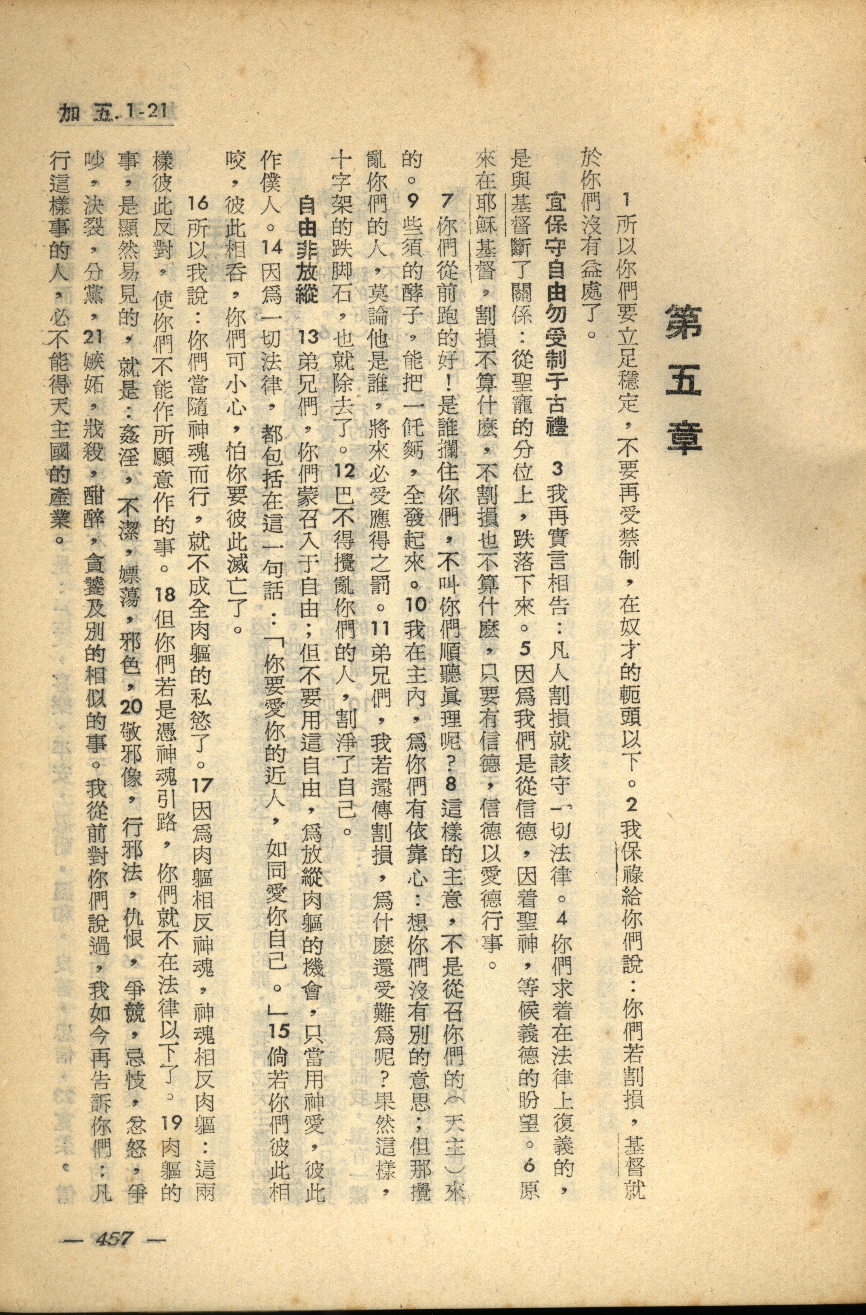 1956年新经全集 加拉太书 5 章 1 节到 5 章 21 节