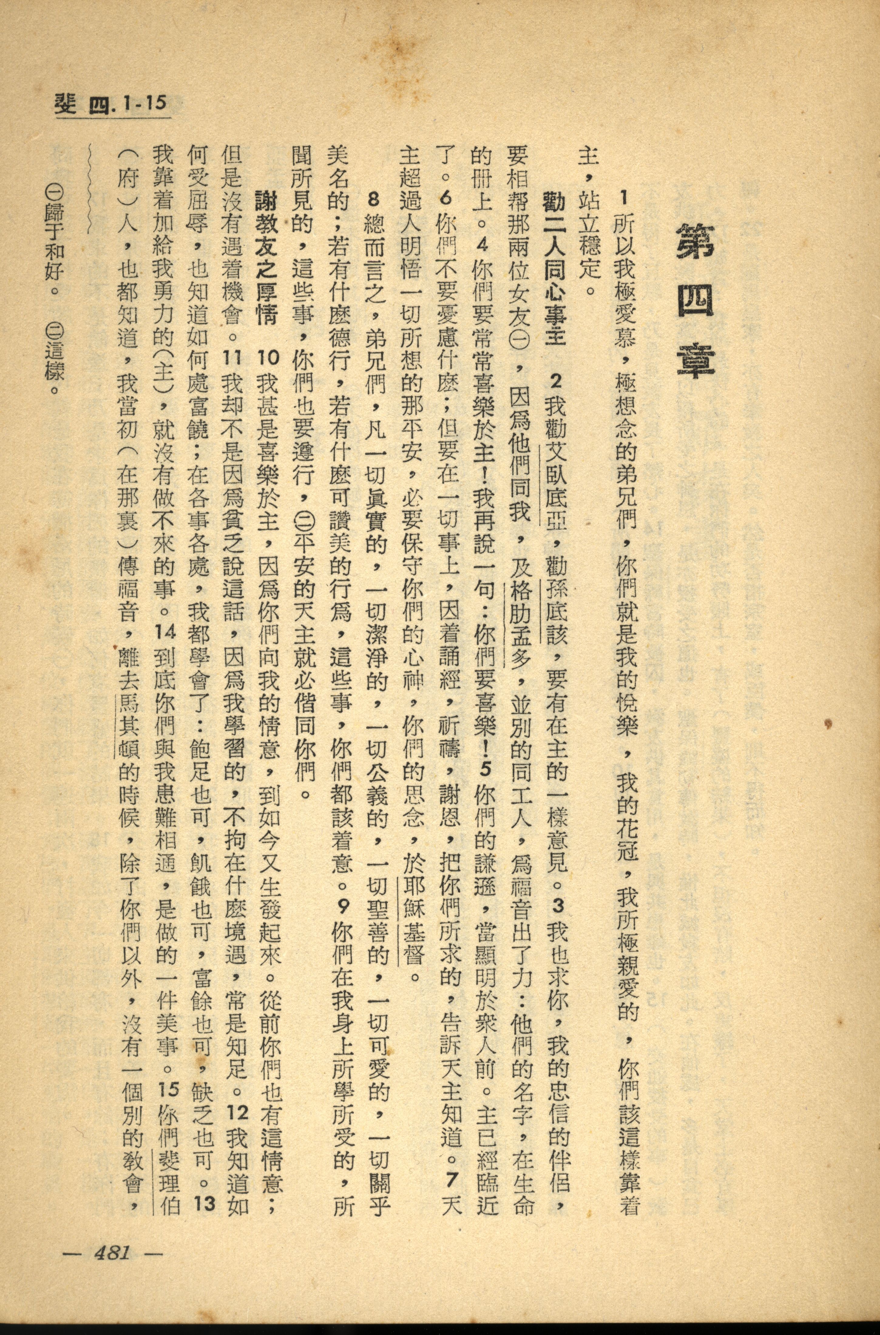 1956年新经全集 腓立比书 4 章 1 节到 4 章 15 节