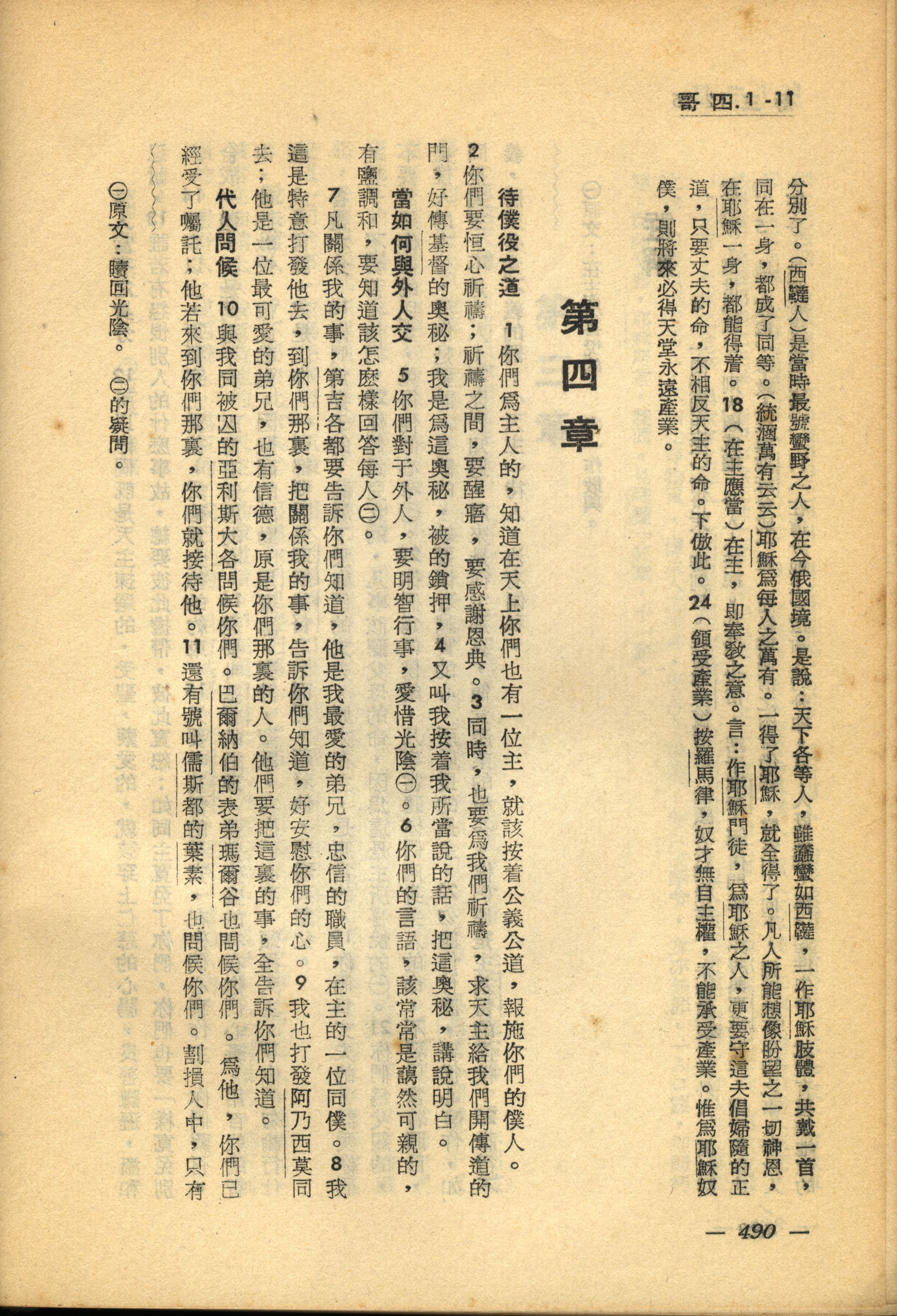 1956年新经全集 歌罗西书 4 章 1 节到 4 章 11 节