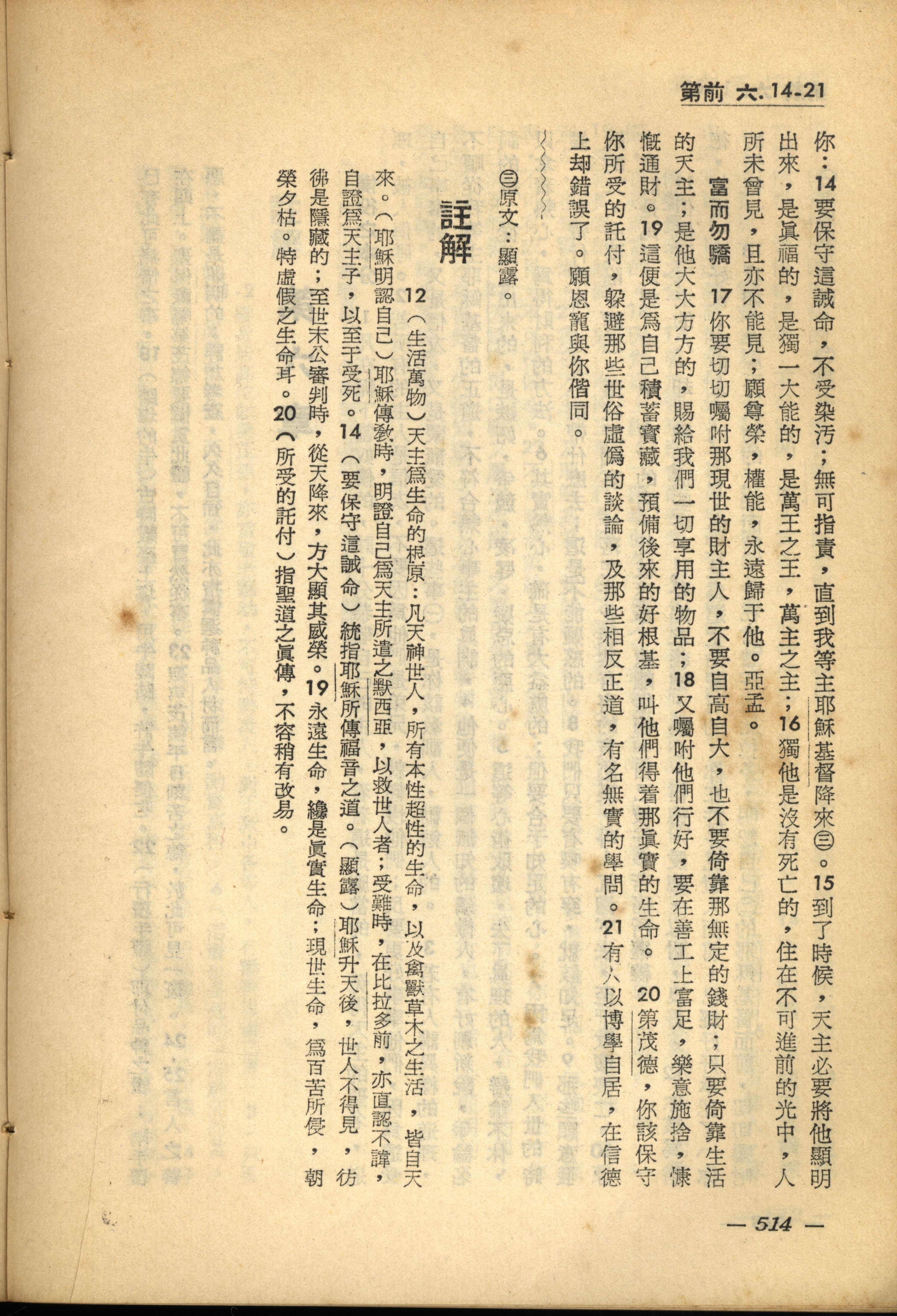 1956年新经全集 提摩太前书 6 章 14 节到 6 章 21 节