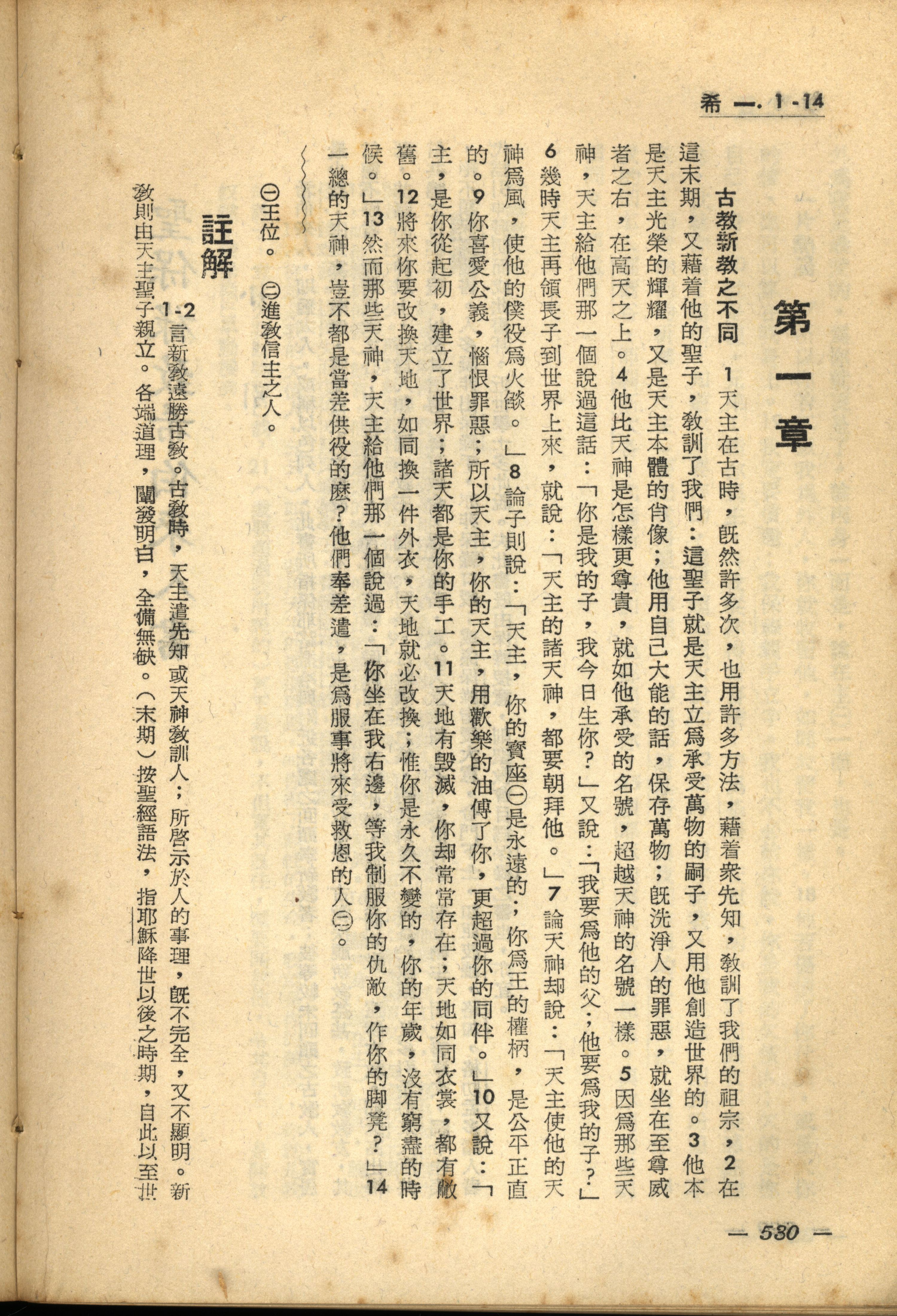 1956年新经全集 希伯来书 1 章 1 节到 1 章 14 节