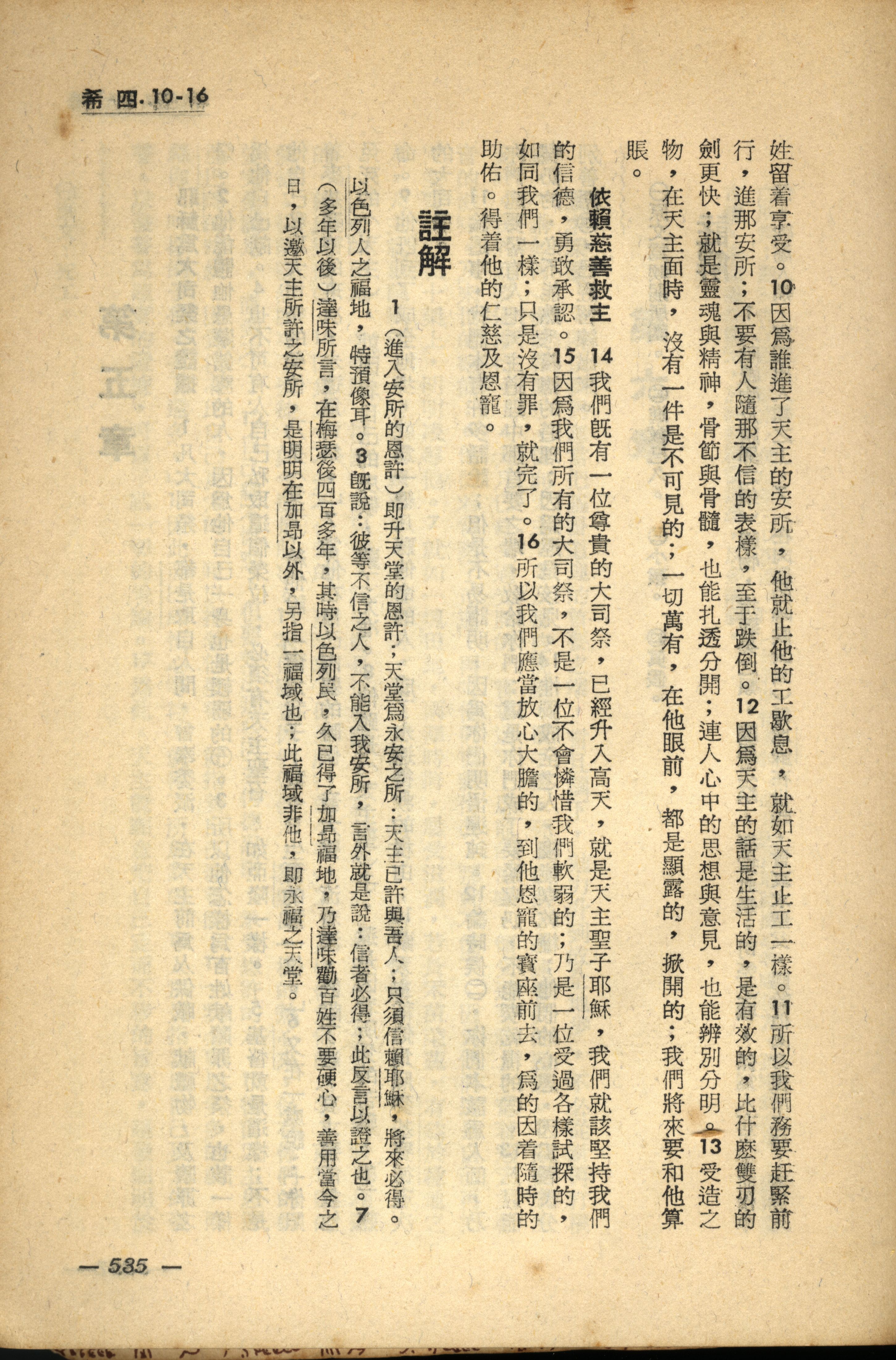 1956年新经全集 希伯来书 4 章 10 节到 4 章 16 节