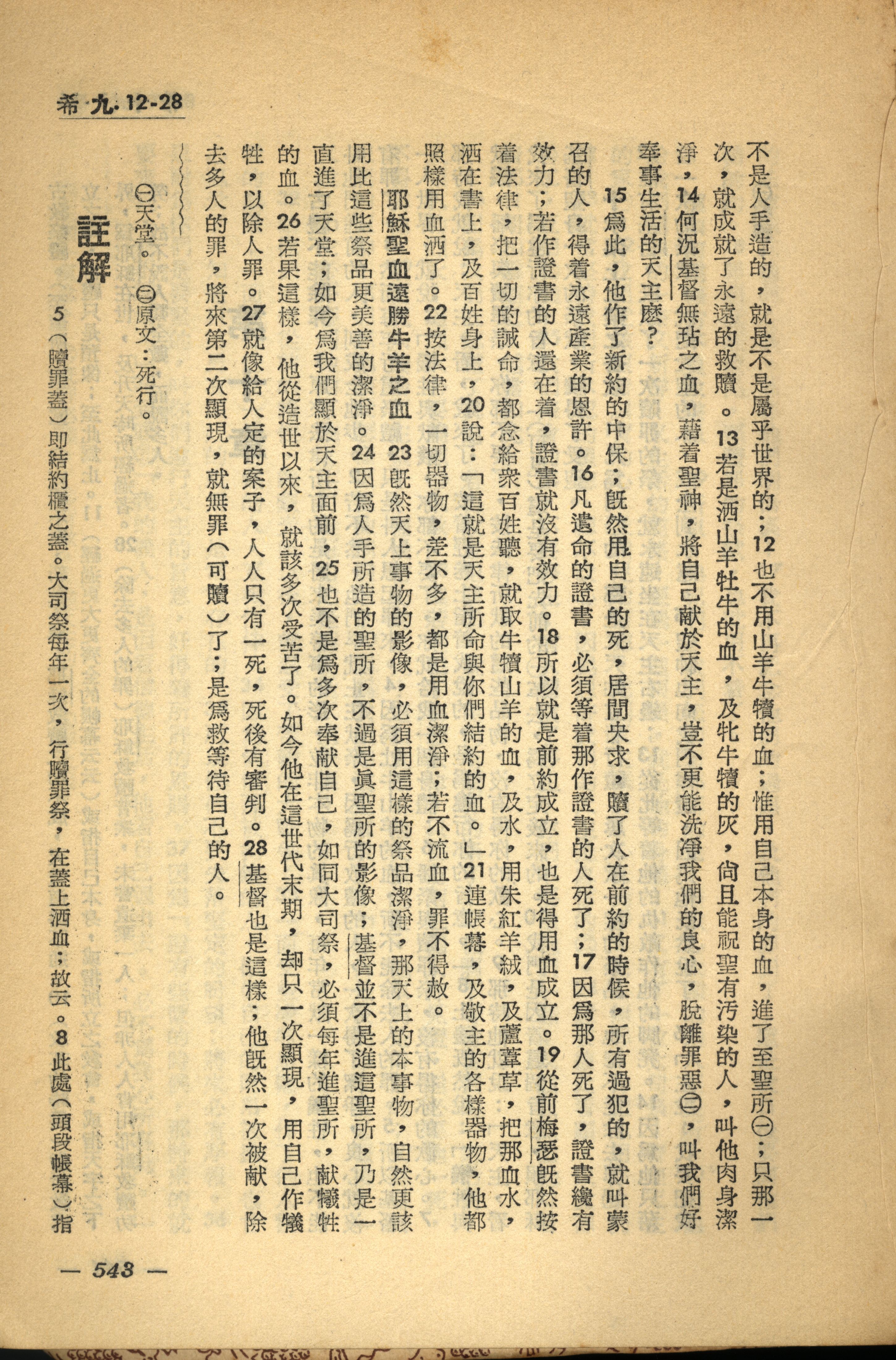 1956年新经全集 希伯来书 9 章 12 节到 9 章 28 节