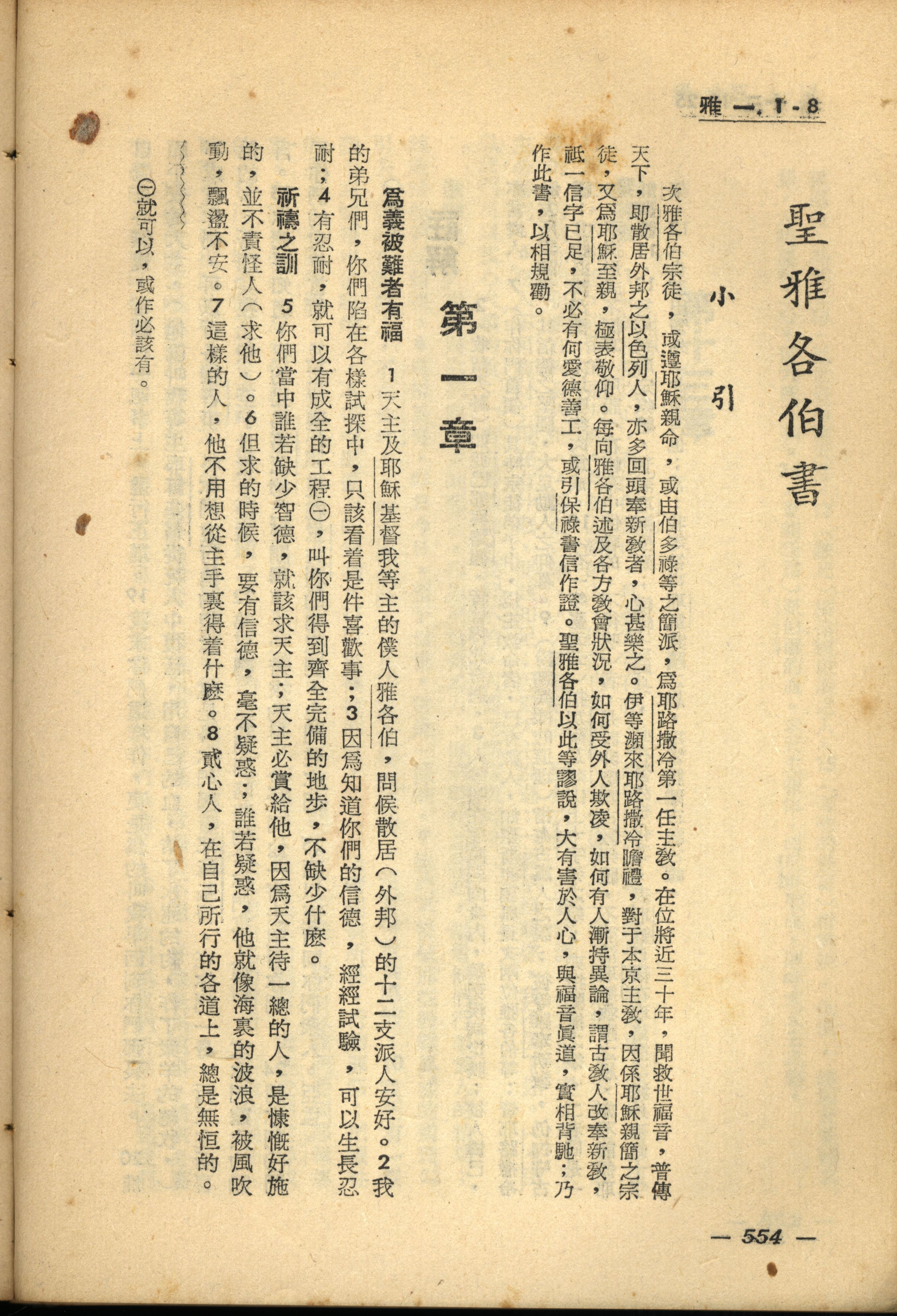 1956年新经全集 雅各书 1 章 1 节到 1 章 8 节