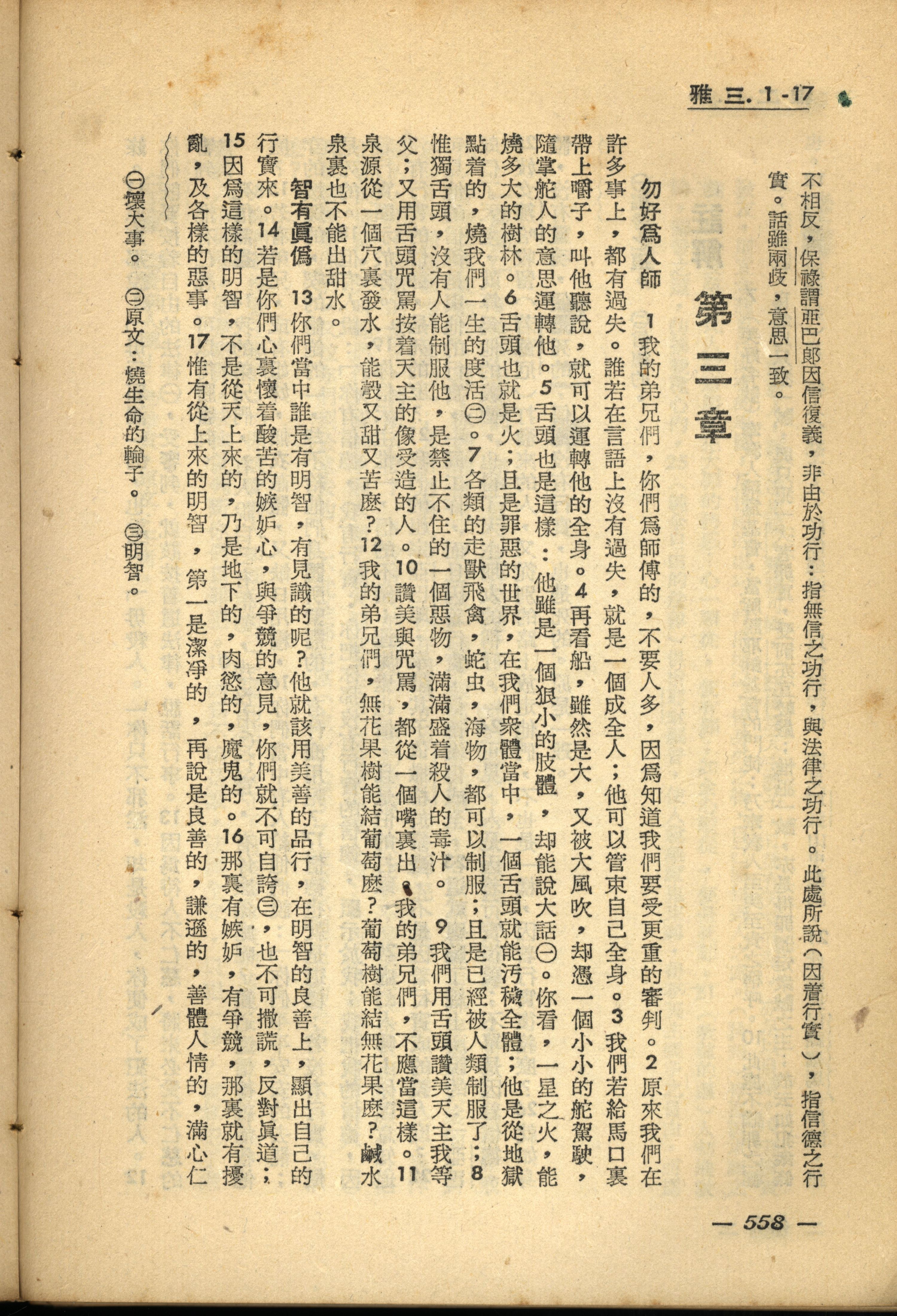 1956年新经全集 雅各书 3 章 1 节到 3 章 17 节