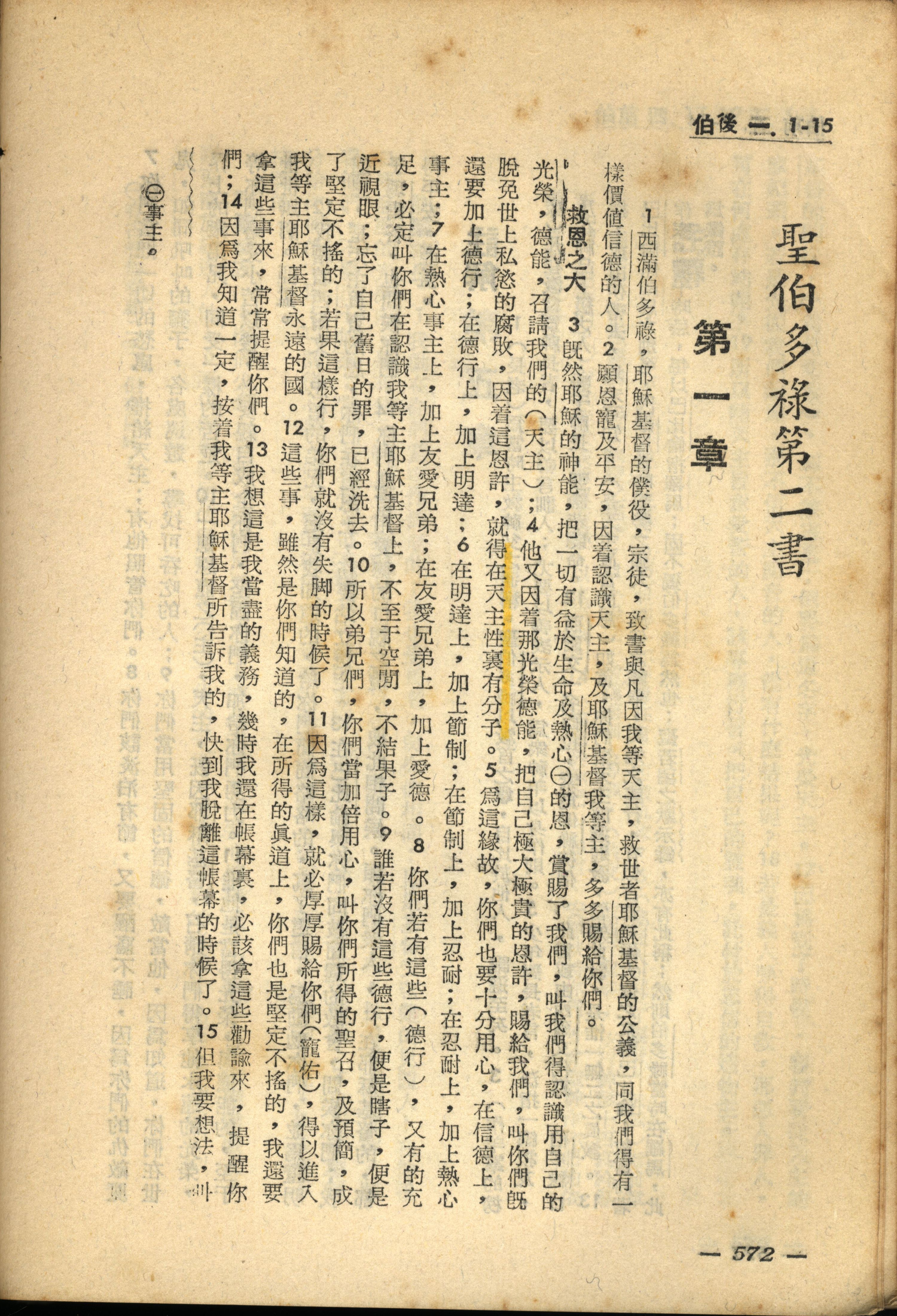 1956年新经全集 彼得后书 1 章 1 节到 1 章 15 节