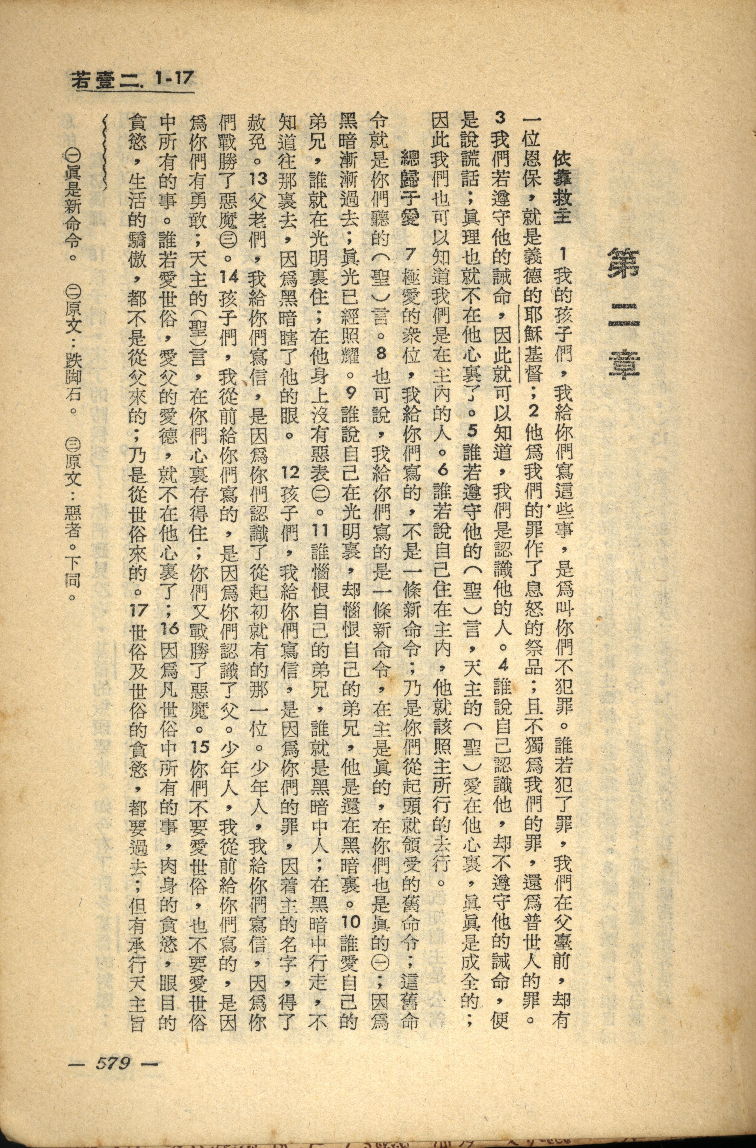 1956年新经全集 约翰一书 2 章 1 节到 2 章 17 节