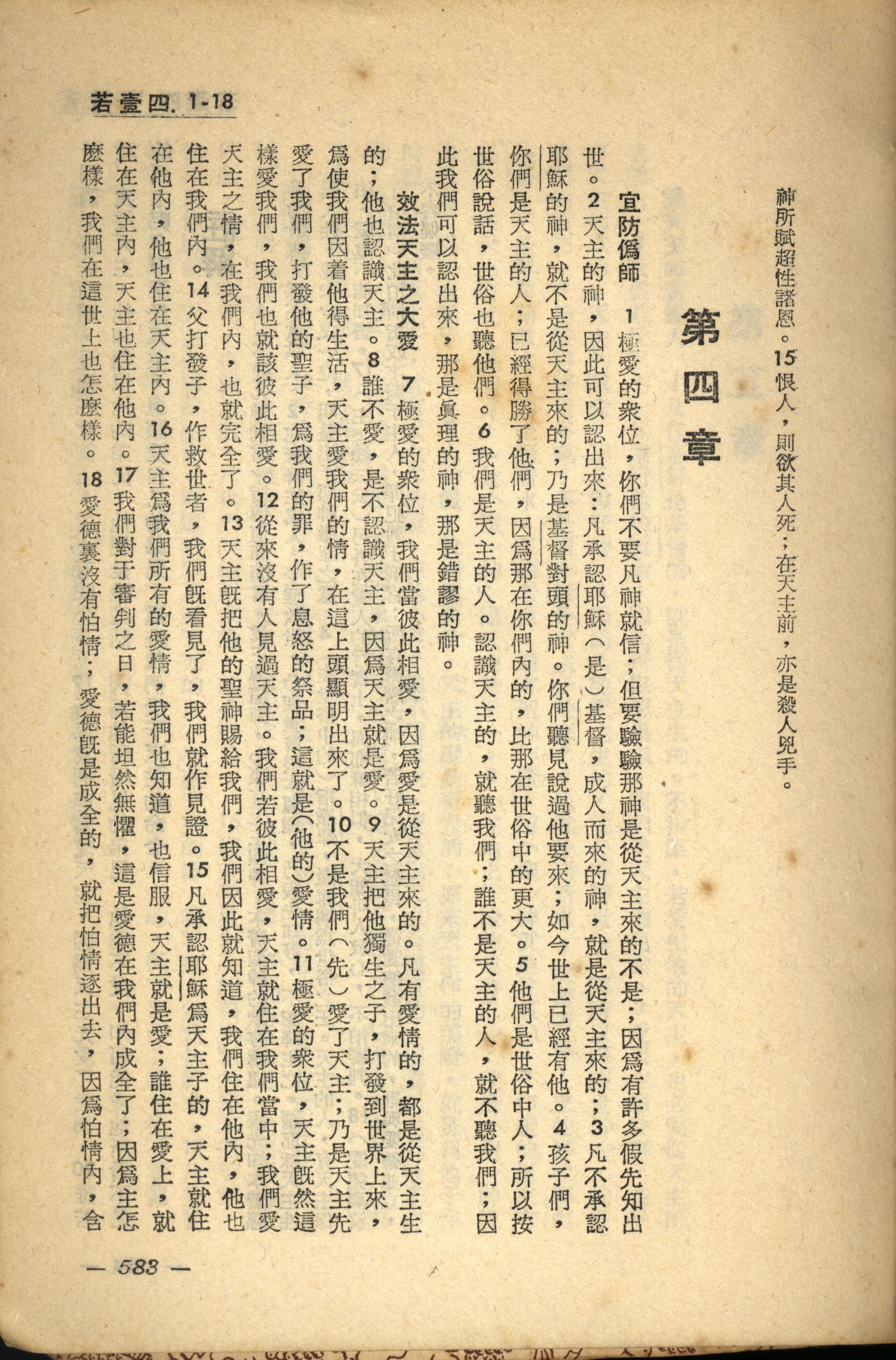 1956年新经全集 约翰一书 4 章 1 节到 4 章 18 节