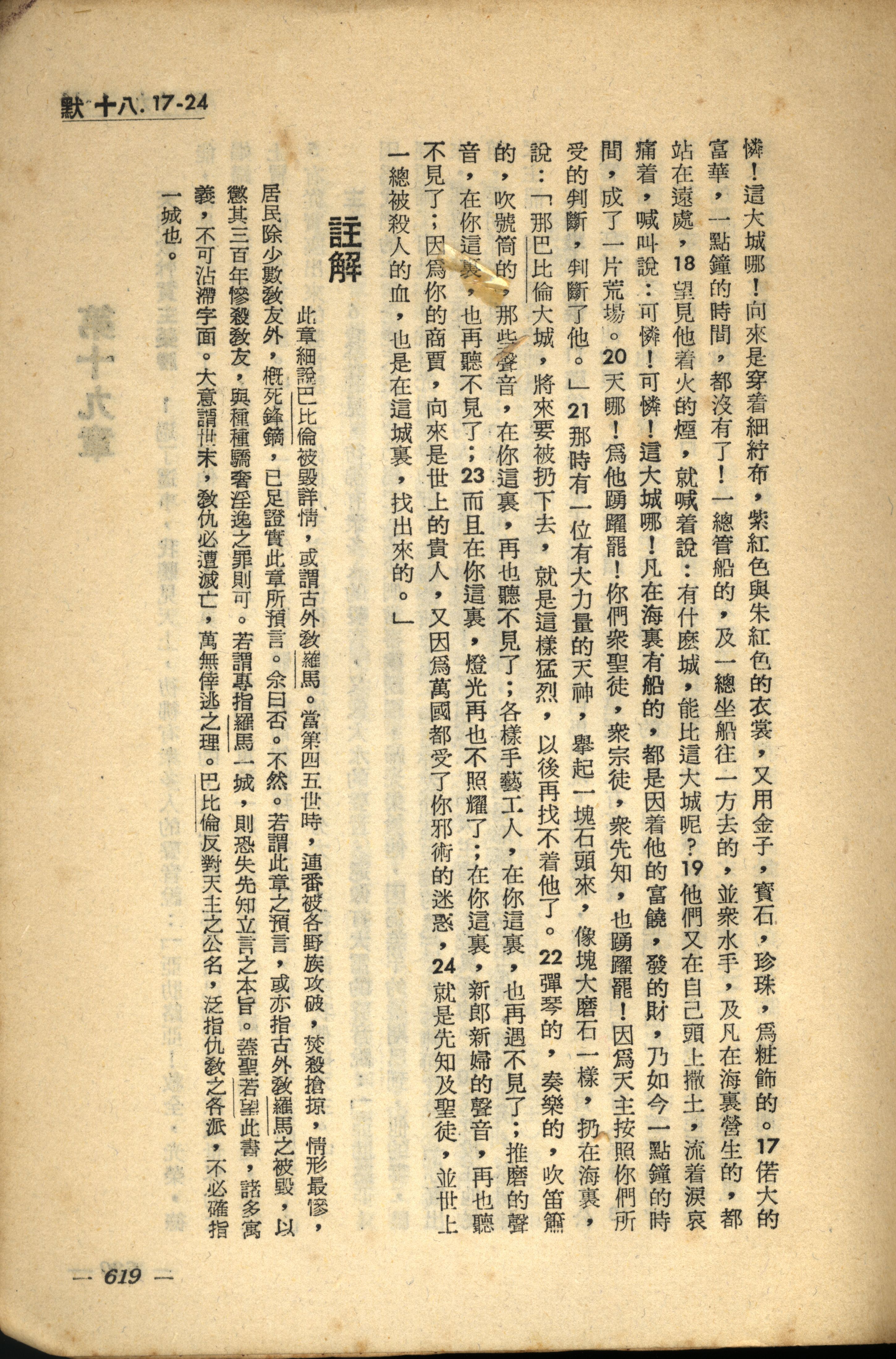 1956年新经全集 启示录 18 章 17 节到 18 章 24 节