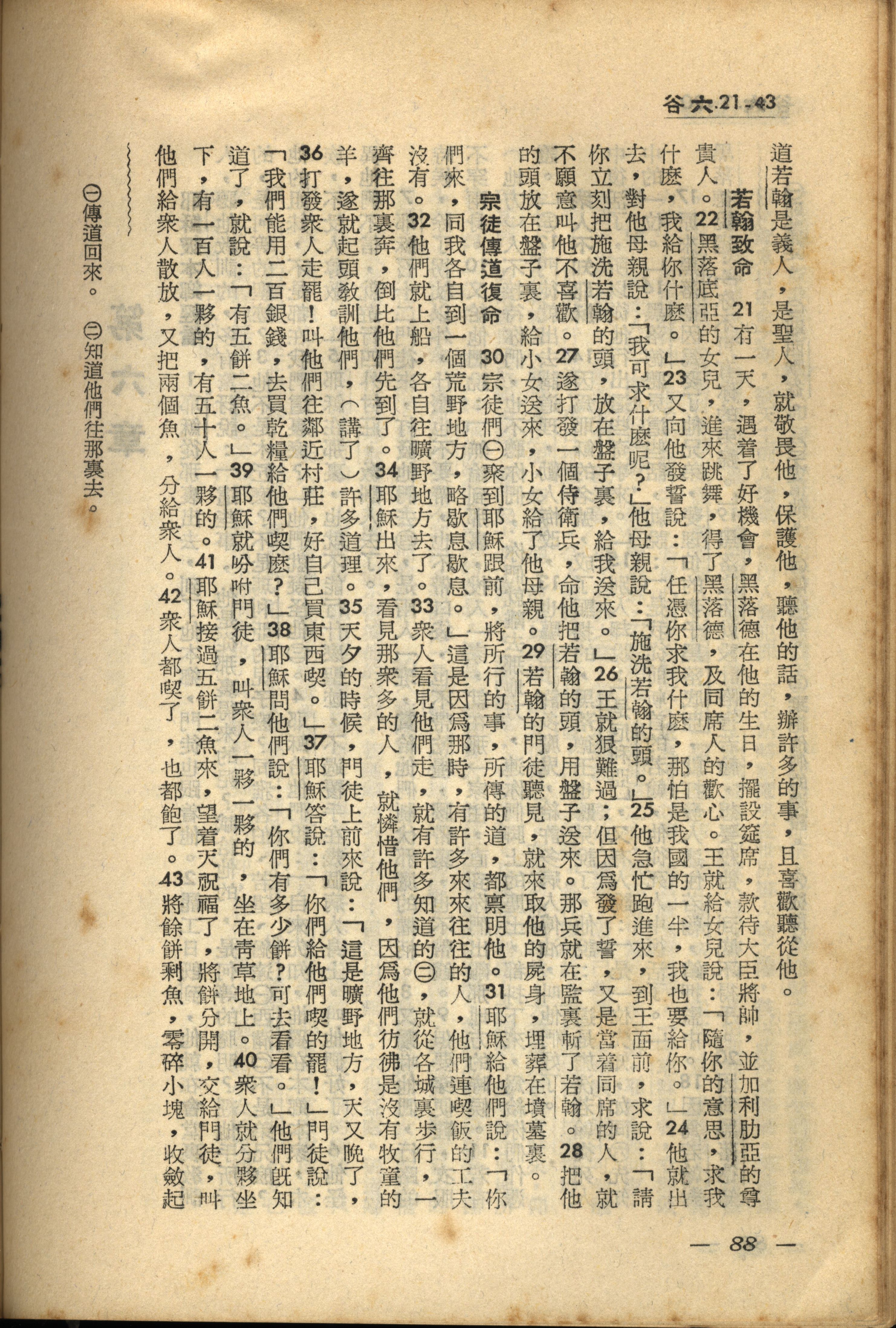 1956年新经全集 马可福音 6 章 21 节到 6 章 43 节