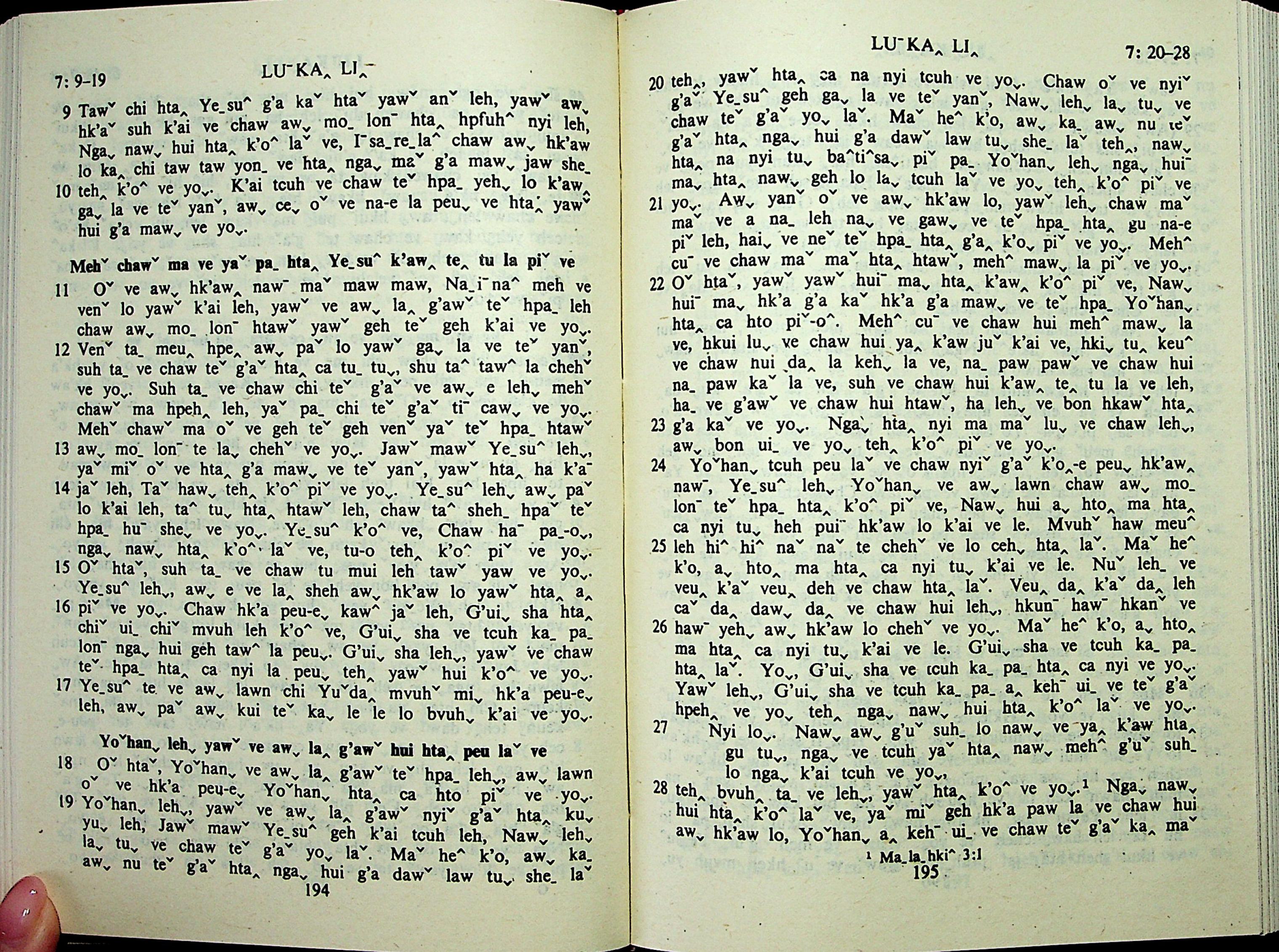 1985年拉祜文新约全书 路加福音 7 章 9 节到 7 章 28 节