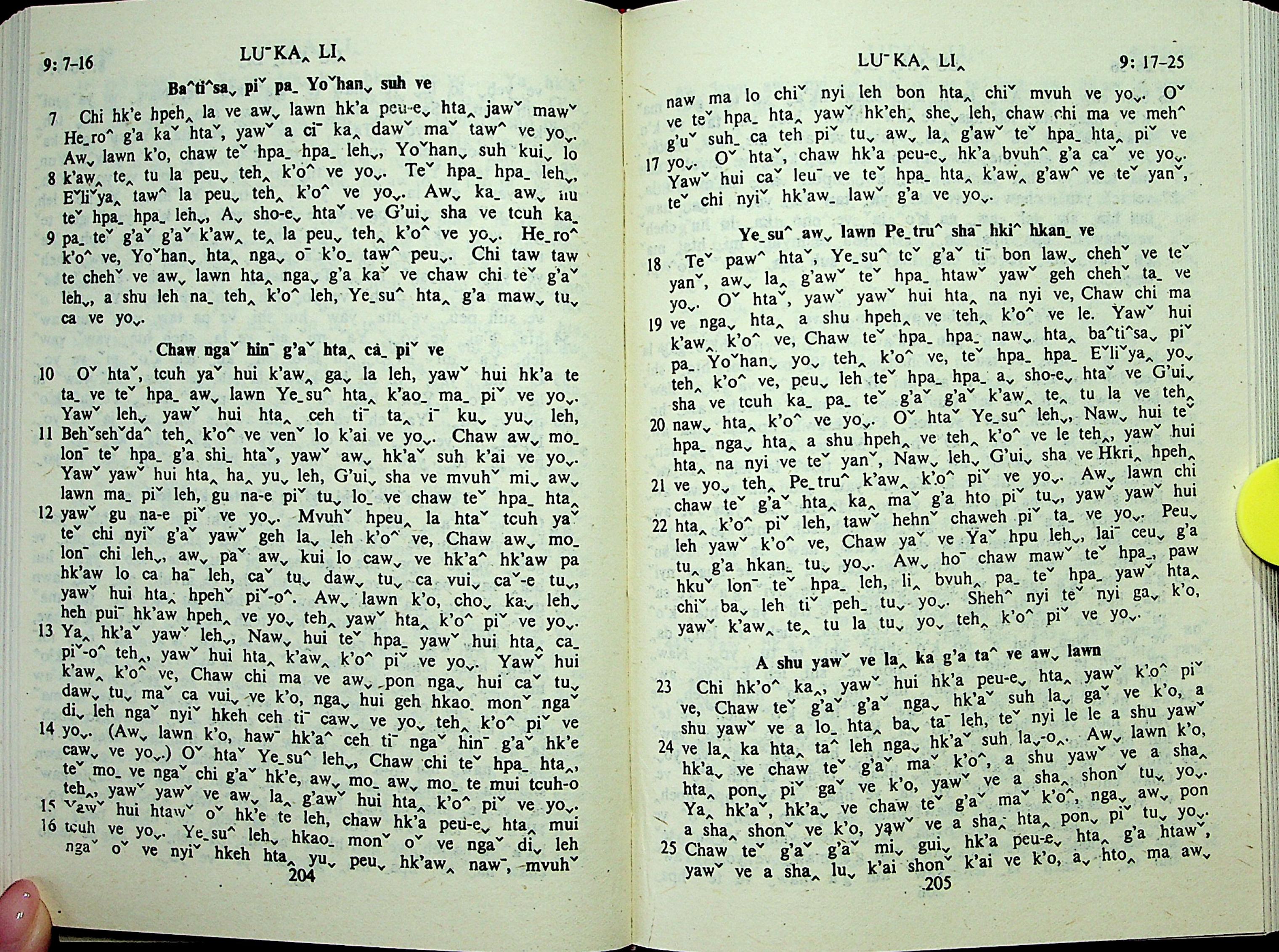 1985年拉祜文新约全书 路加福音 9 章 7 节到 9 章 25 节