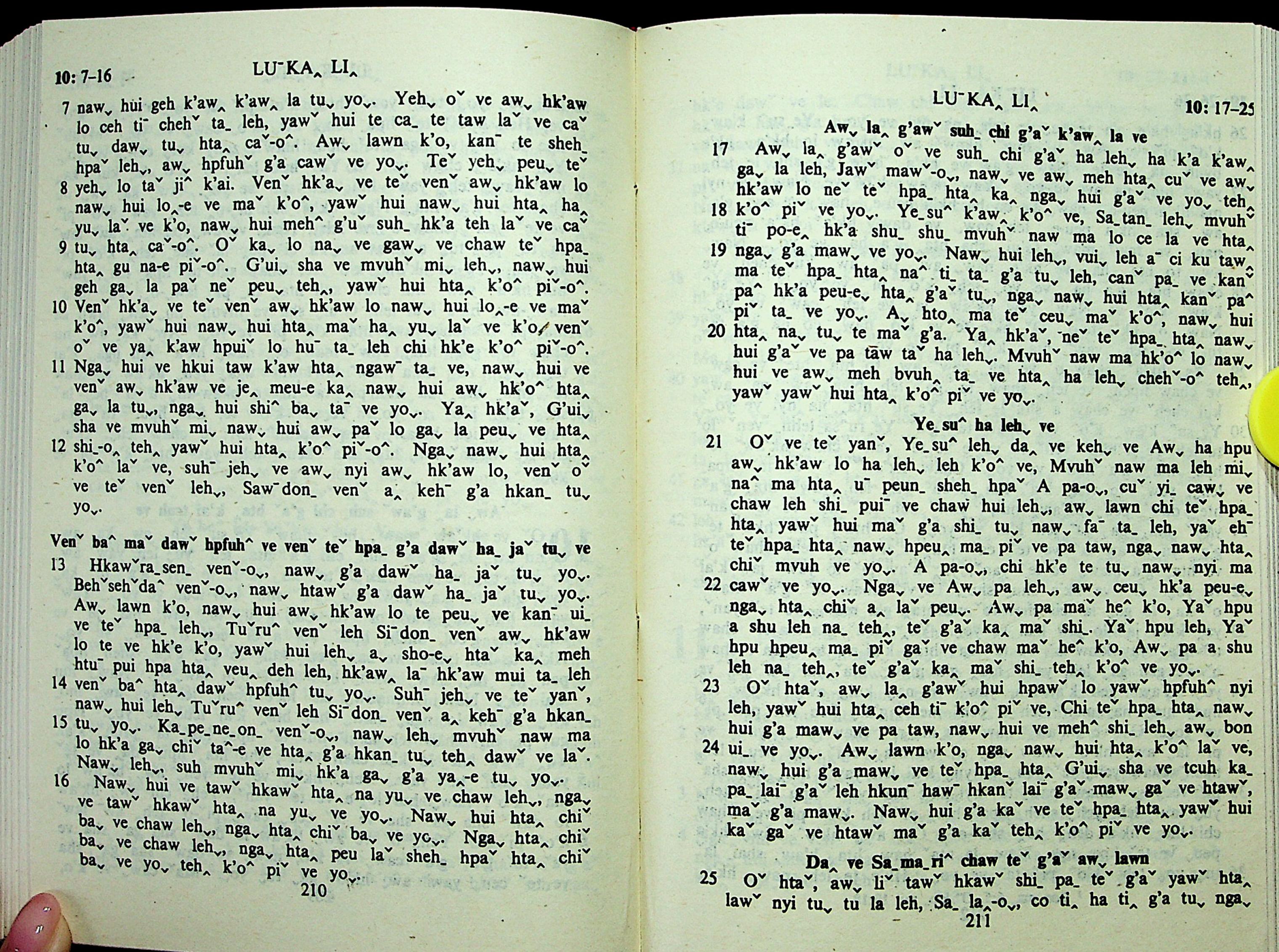 1985年拉祜文新约全书 路加福音 10 章 7 节到 10 章 25 节