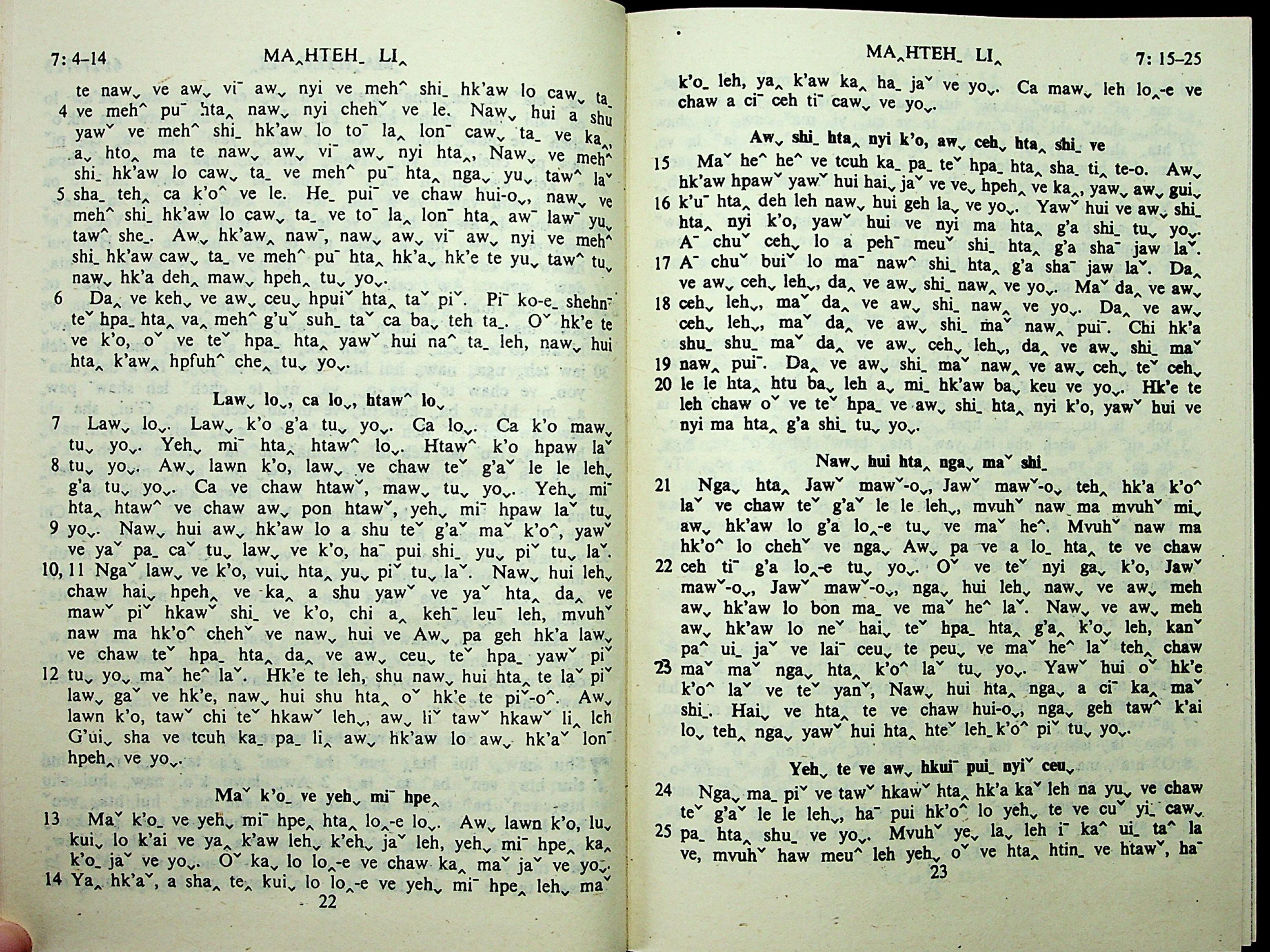 1985年拉祜文新约全书 马太福音 7 章 4 节到 7 章 25 节