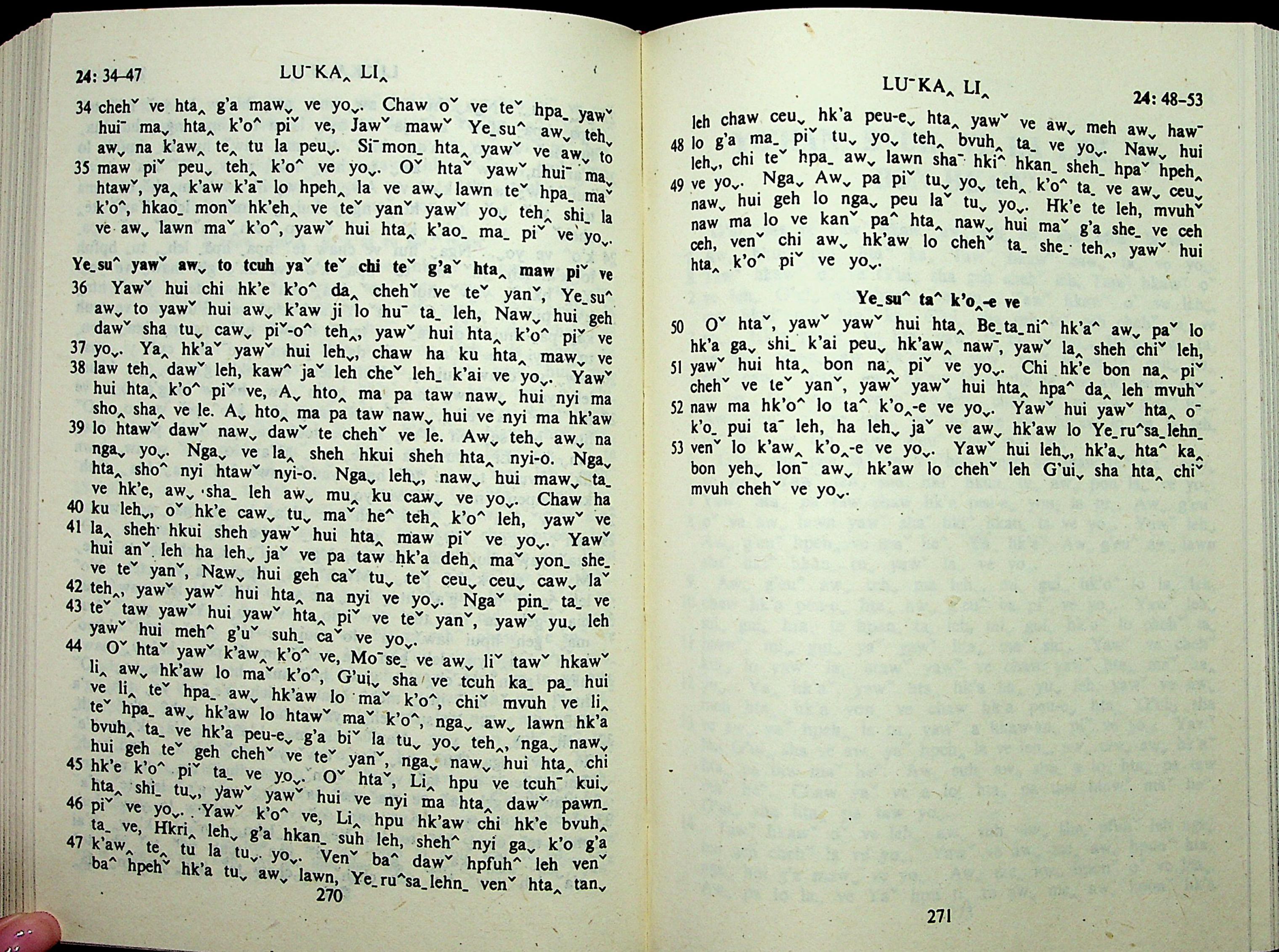 1985年拉祜文新约全书 路加福音 24 章 34 节到 24 章 53 节